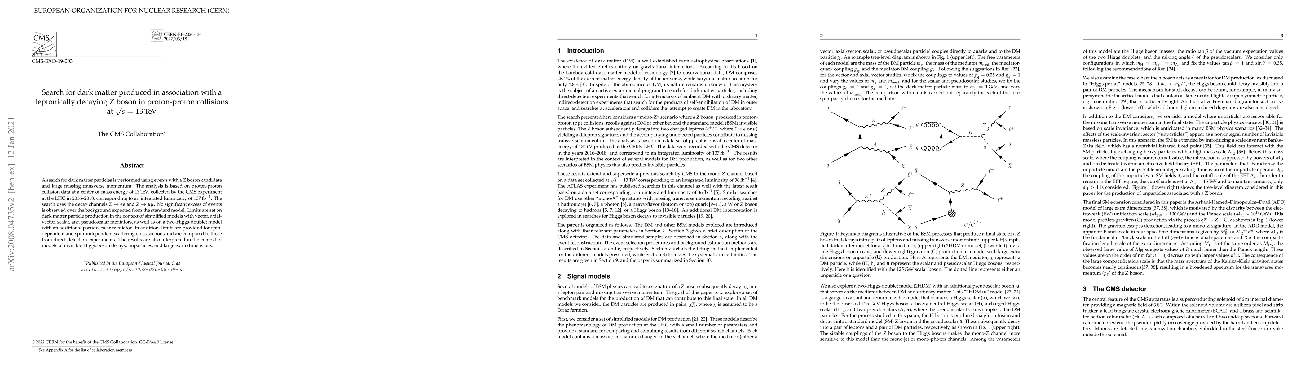 Researchers searched for dark matter in proton-proton collisions at 13 TeV, finding no significant excess of events over background expectations; limits were set on dark matter production and scattering cross sections.