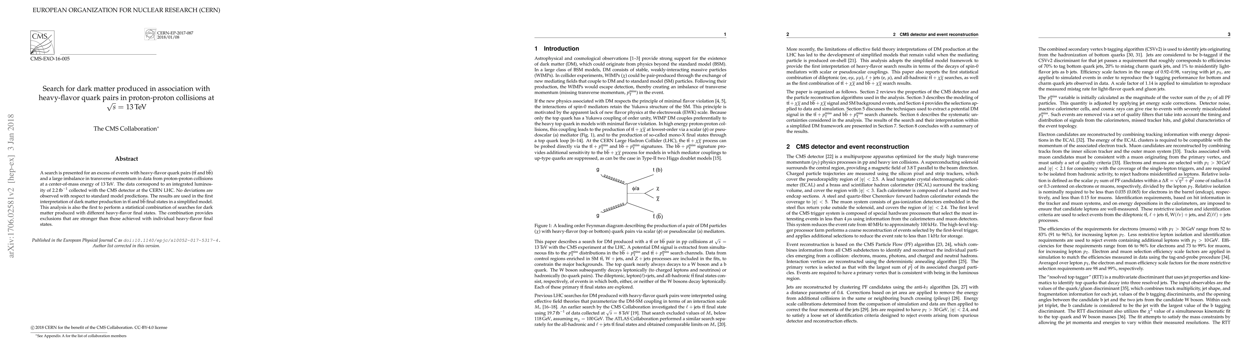 Researchers searched for dark matter particles produced in association with heavy-flavor quarks in proton-proton collisions at 13 TeV, finding no evidence of deviations from standard model predictions. The analysis set a new exclusion limit for dark matter production in heavy-flavor final states.