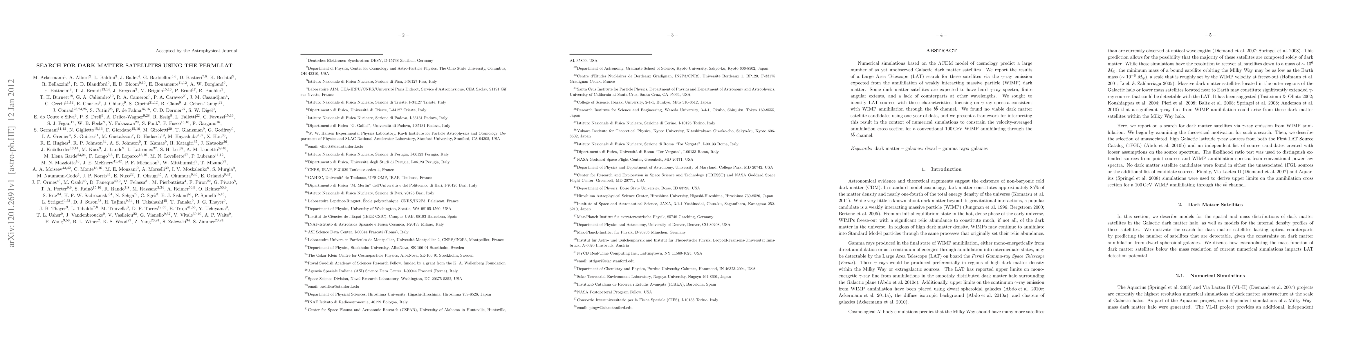 Researchers used Fermi-LAT to search for gamma-ray signals from dark matter satellites, finding no viable candidates after one year of data; the results help constrain WIMP annihilation cross-sections.
