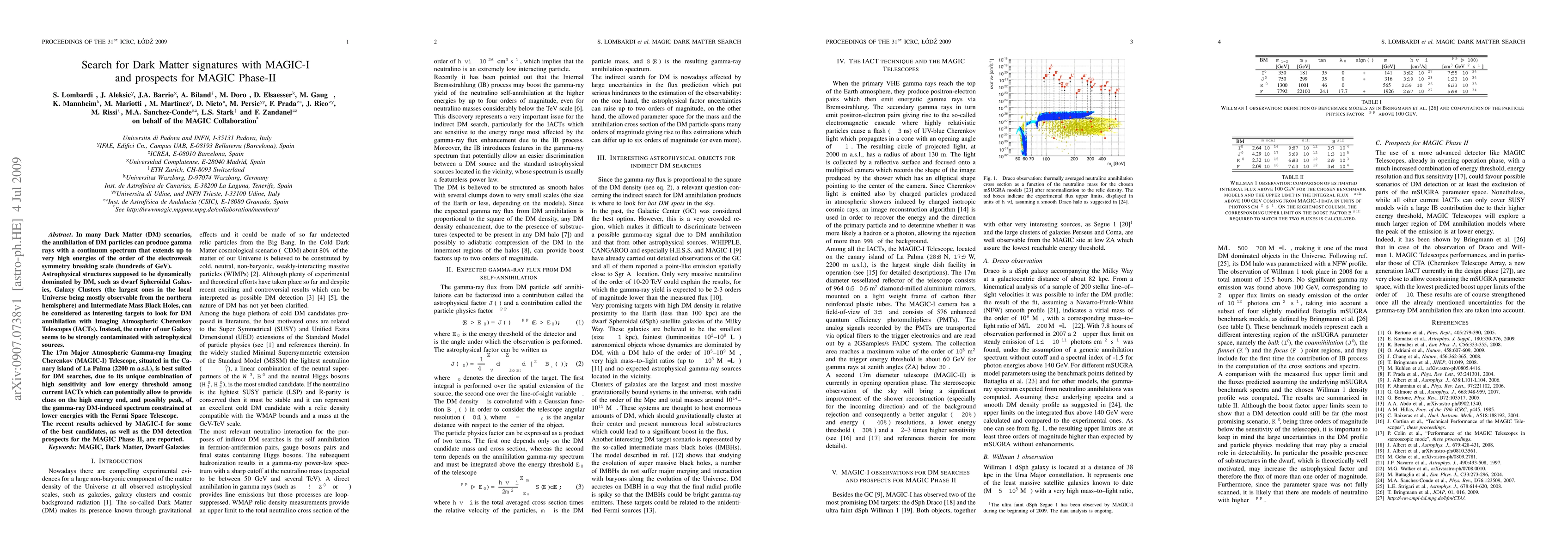 The MAGIC-I telescope searches for dark matter signatures in gamma rays with a high-energy threshold, aiming to detect the annihilation of dark matter particles. Phase II upgrades promise improved sensitivity and prospects for detection.