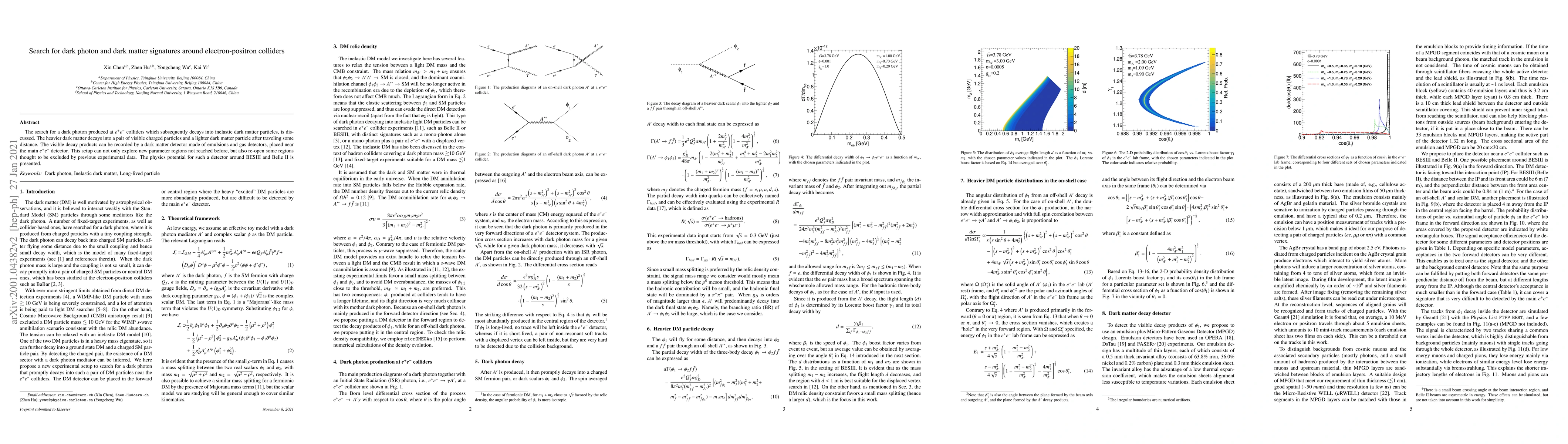 The search for a dark photon produced at $e^{+}e^{-}$ colliders which subsequently decays into inelastic dark matter particles, is discussed. The heavier dark matter decays into a pair of visible charged particles and a lighter dark matter particle after traveling some distance. The visible decay products can be recorded by a dark matter detector made of emulsions and gas detectors, placed near the main $e^{+}e^{-}$ detector. This setup can not only explore new parameter regions not reached before, but also re-open some regions thought to be excluded by previous experimental data. The physics potential for such a detector around BESIII and Belle II is presented.