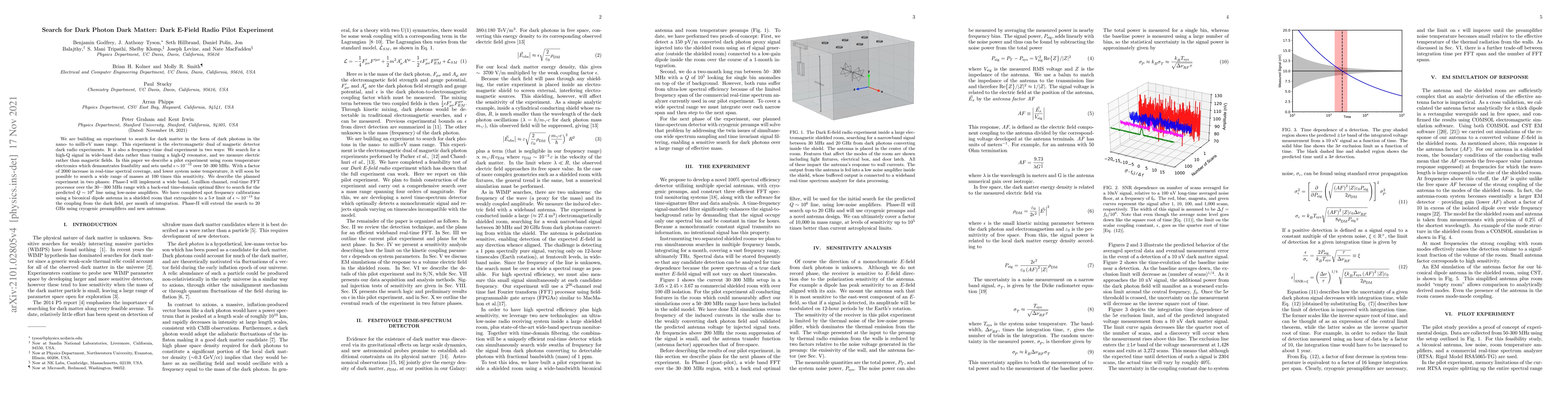We are building an experiment to search for dark matter in the form of dark photons in the nano- to milli-eV mass range. This experiment is the electromagnetic dual of magnetic detector dark radio experiments. It is also a frequency-time dual experiment in two ways: We search for a high-Q signal in wide-band data rather than tuning a high-$Q$ resonator, and we measure electric rather than magnetic fields. In this paper we describe a pilot experiment using room temperature electronics which demonstrates feasibility and sets useful limits to the kinetic coupling $\epsilon \sim 10^{-12}$ over 50--300 MHz. With a factor of 2000 increase in real-time spectral coverage, and lower system noise temperature, it will soon be possible to search a wide range of masses at 100 times this sensitivity. We describe the planned experiment in two phases: Phase-I will implement a wide band, 5-million channel, real-time FFT processor over the 30--300 MHz range with a back-end time-domain optimal filter to search for the predicted $Q\sim 10^6$ line using low-noise amplifiers. We have completed spot frequency calibrations using a biconical dipole antenna in a shielded room that extrapolate to a $5 \sigma$ limit of $\epsilon\sim 10^{-13}$ for the coupling from the dark field, per month of integration. Phase-II will extend the search to 20 GHz using cryogenic preamplifiers and new antennas.