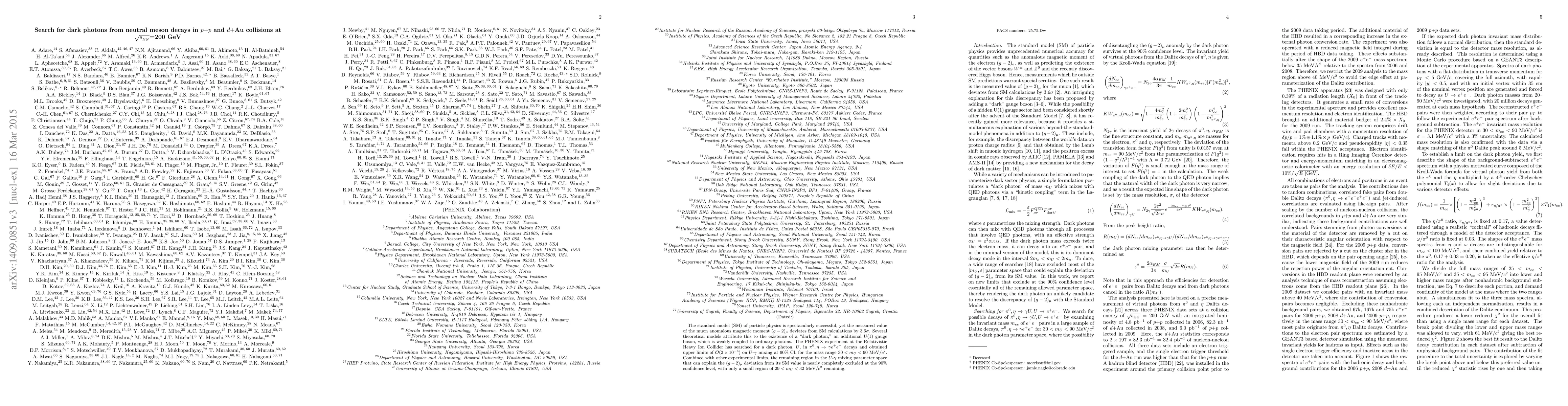 Heavy Ion Collider has searched for a dark photon, $U$, in $\pi^0,\eta