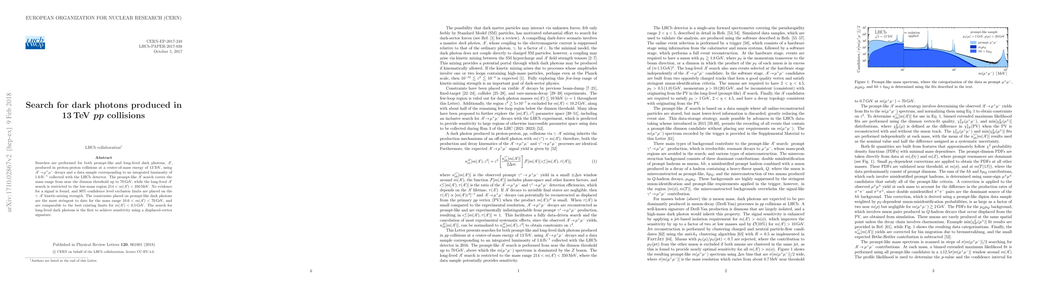 LHCb detector. The prompt-like $A^{\prime}$ search covers the mass range from