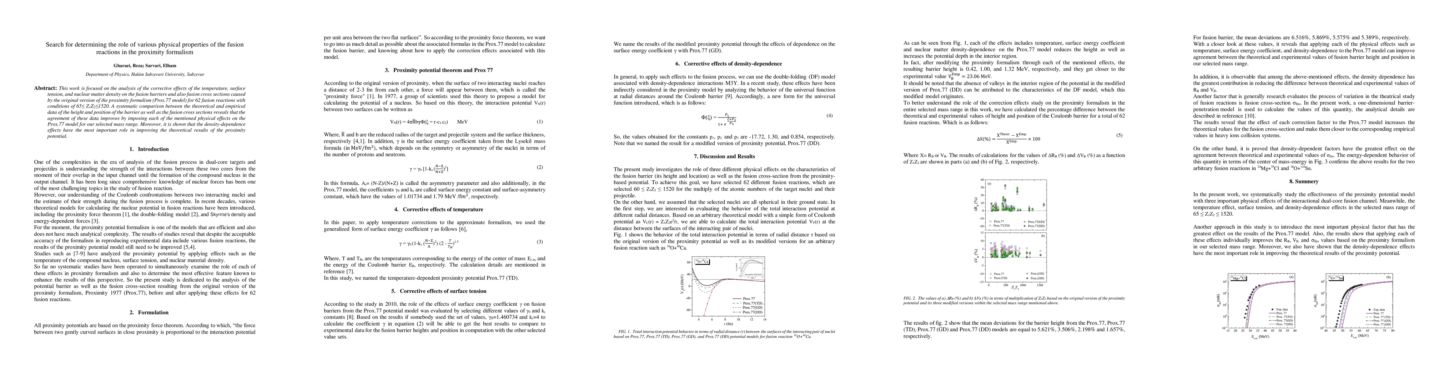 A study analyzed the effect of temperature, surface tension, and nuclear matter density on fusion reactions using the Prox.77 model. It found that imposing these effects improved agreement with empirical data and density-dependence had the most significant impact.