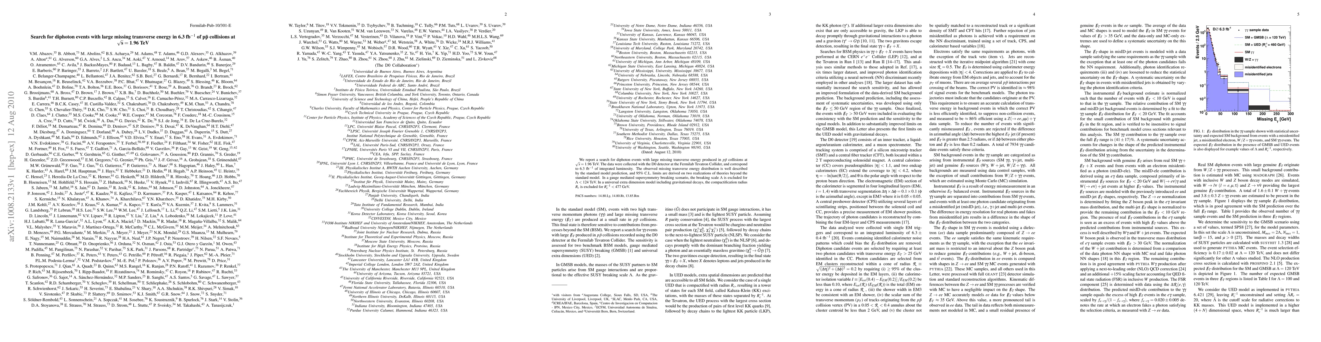 We report a search for diphoton events with large missing transverse energy produced in ppbar collisions at sqrt(s)=1.96 TeV. The data were collected with the D0 detector at the Fermilab Tevatron Collider, and correspond to 6.3 fb-1 of integrated luminosity. The observed missing transverse energy distribution is well described by the standard model prediction, and 95% C.L. limits are derived on two realizations of theories beyond the standard model. In a gauge mediated supersymmetry breaking scenario, the breaking scale Lambda is excluded for Lambda < 124 TeV. In a universal extra dimension model including gravitational decays, the compactification radius R_c is excluded for R_c-1 < 477 GeV.