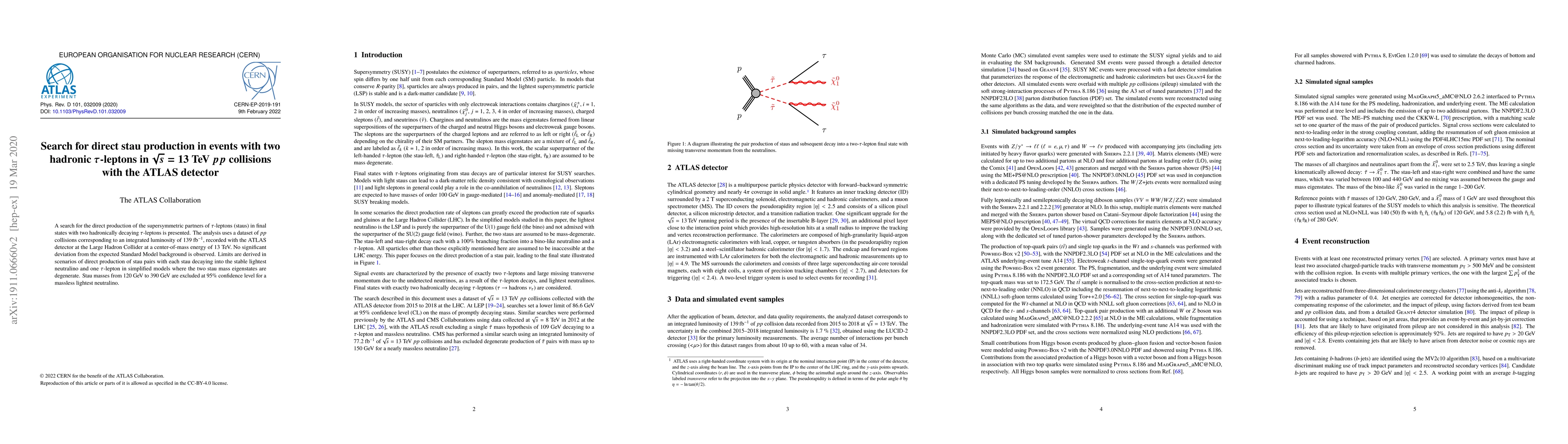 This paper reports a search for direct stau production in events with two hadronically decaying tau-leptons using the ATLAS detector at the LHC. No significant deviations from Standard Model predictions were observed, leading to exclusion of stau masses up to 390 GeV at 95% confidence level for degenerate stau mass eigenstates and a massless lightest neutralino.