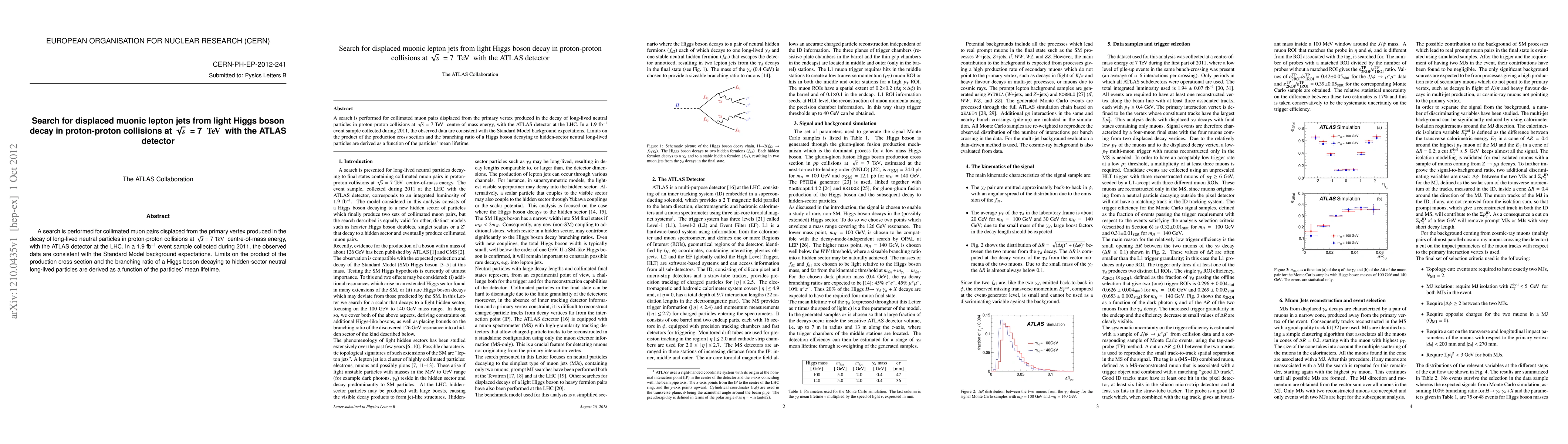 The ATLAS detector searched for muon pairs produced from light Higgs bosons decaying into long-lived neutral particles in proton-proton collisions at 7 TeV, finding no evidence of such events.