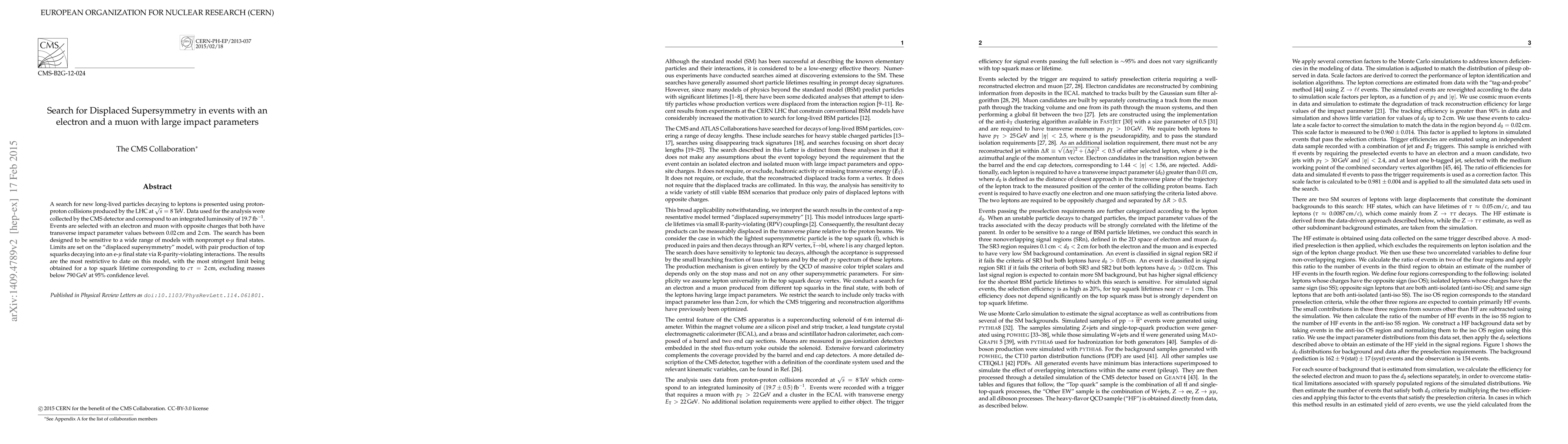 A search for new long-lived particles decaying to leptons is presented using proton-proton collisions produced by the LHC at sqrt(s) = 8 TeV. Data used for the analysis were collected by the CMS detector and correspond to an integrated luminosity of 19.7 inverse femtobarns. Events are selected with an electron and a muon that have transverse impact parameter values between 0.02 cm and 2 cm. The search has been designed to be sensitive to a wide range of models with nonprompt e-mu final states. Limits are set on the "displaced supersymmetry" model, with pair production of top squarks decaying into an e-mu final state via R-parity-violating interactions. The results are the most restrictive to date on this model, with the most stringent limit being obtained for a top squark lifetime corresponding to c tau = 2 cm, excluding masses below 790 GeV at 95% confidence level.