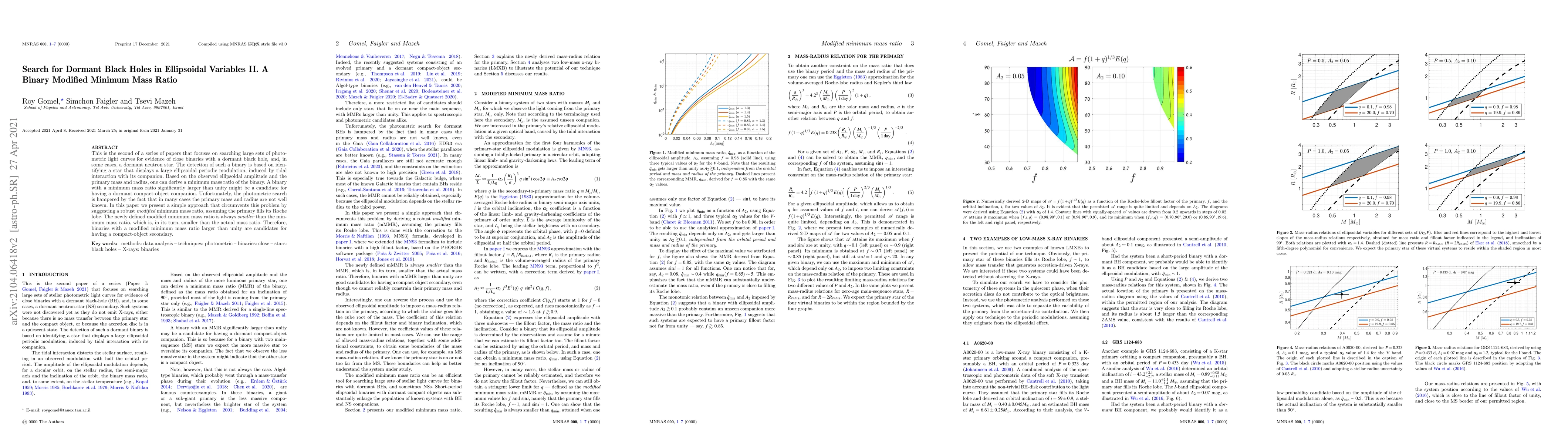 This is the second of a series of papers that focuses on searching large sets of photometric light curves for evidence of close binaries with a dormant black hole, and, in some cases, a dormant neutron star. The detection of such a binary is based on identifying a star that displays a large ellipsoidal periodic modulation, induced by tidal interaction with its companion. Based on the observed ellipsoidal amplitude and the primary mass and radius, one can derive a minimum mass ratio of the binary. A binary with a minimum mass ratio significantly larger than unity might be a candidate for having a dormant compact-object companion. Unfortunately, the photometric search is hampered by the fact that in many cases the primary mass and radius are not well known. In this paper we present a simple approach that circumvents this problem by suggesting a robust modified minimum mass ratio, assuming the primary fills its Roche lobe. The newly defined modified minimum mass ratio is always smaller than the minimum mass ratio, which is, in its turn, smaller than the actual mass ratio. Therefore, binaries with a modified minimum mass ratio larger than unity are candidates for having a compact-object secondary.