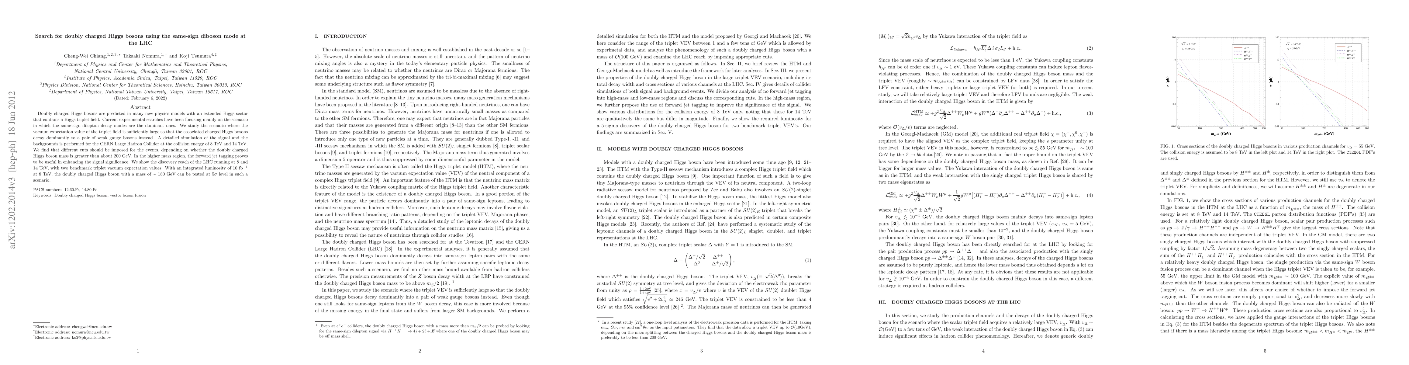 This paper investigates the search for doubly charged Higgs bosons at the LHC, focusing on scenarios where they decay to same-sign diboson pairs rather than dileptons. The study finds that different event cuts are needed based on the boson's mass, with forward jet tagging enhancing signal significance for higher masses, and demonstrates the LHC's potential to discover such bosons up to $\sim 180$ GeV at 8 TeV with 10 fb${}^{-1}$ luminosity.