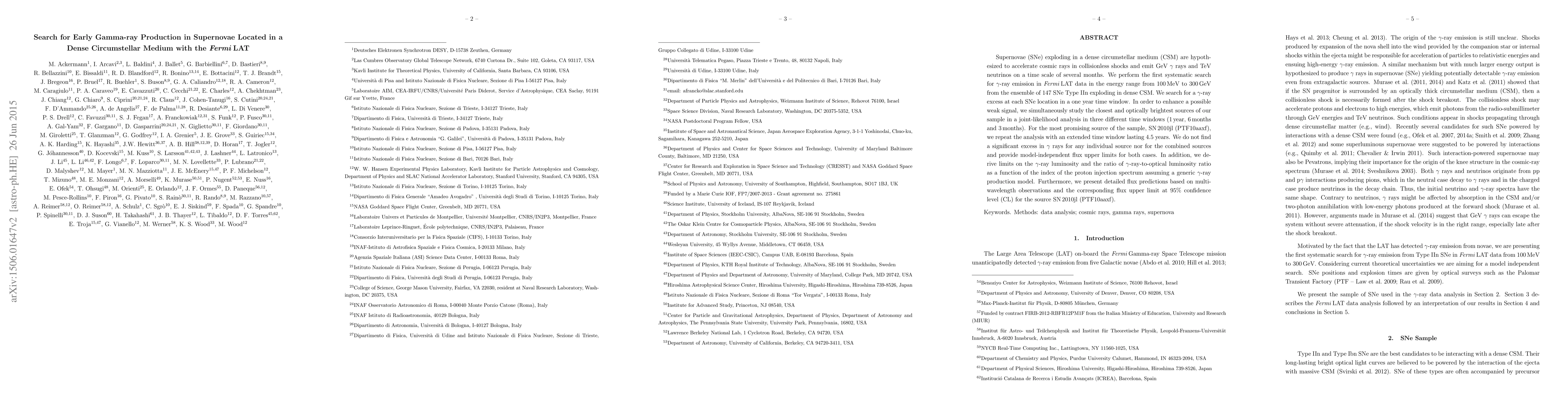 This paper reports a systematic search for early gamma-ray production in supernovae Type IIn located in dense circumstellar mediums using Fermi LAT data. Despite analyzing 147 SNe and employing joint-likelihood analysis, no significant gamma-ray excess was detected, leading to model-independent flux upper limits and constraints on gamma-ray luminosity.