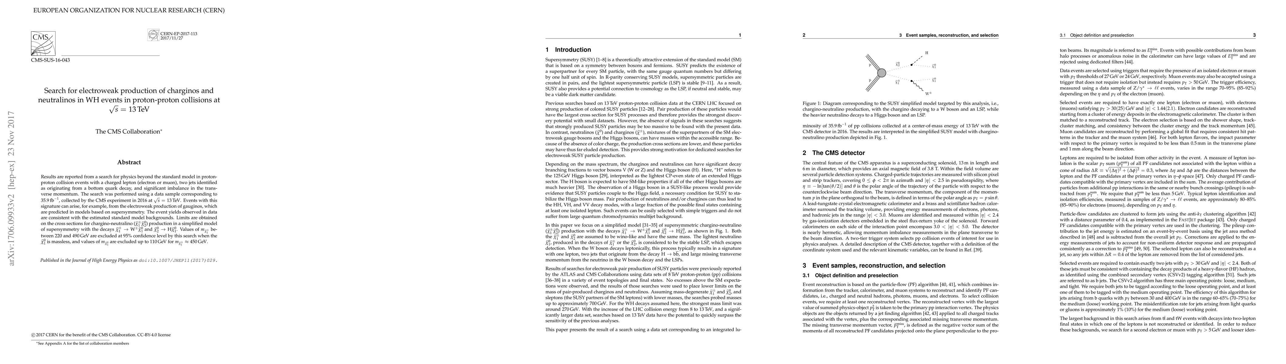 Results are reported from a search for physics beyond the standard model in proton-proton collision events with a charged lepton (electron or muon), two jets identified as originating from a bottom quark decay, and significant imbalance in the transverse momentum. The search was performed using a data sample corresponding to 35.9 inverse femtobarns, collected by the CMS experiment in 2016 at sqrt(s) = 13 TeV. Events with this signature can arise, for example, from the electroweak production of gauginos, which are predicted in models based on supersymmetry. The event yields observed in data are consistent with the estimated standard model backgrounds. Limits are obtained on the cross sections for chargino-neutralino production in a simplified model of supersymmetry with the decays chargino to W+/- lsp and neutralino to H lsp. Values of m[chargino] between 220 and 490 GeV are excluded at 95% confidence level by this search when the lsp is massless, and values of m[lsp] are excluded up to 110 GeV for m[chargino] about 450 GeV.