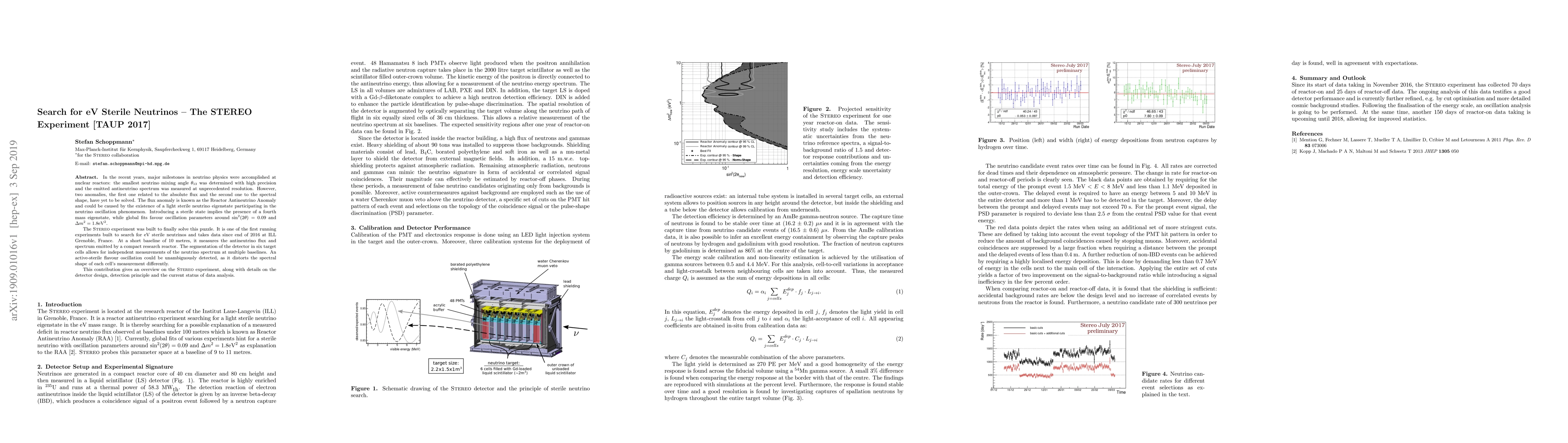 The STEREO experiment aims to resolve anomalies in reactor neutrino experiments by searching for eV sterile neutrinos, which could explain the Reactor Antineutrino Anomaly. Operating since 2016 at ILL Grenoble, it measures antineutrino flux and spectrum with a segmented detector to detect oscillation-induced spectral distortions.