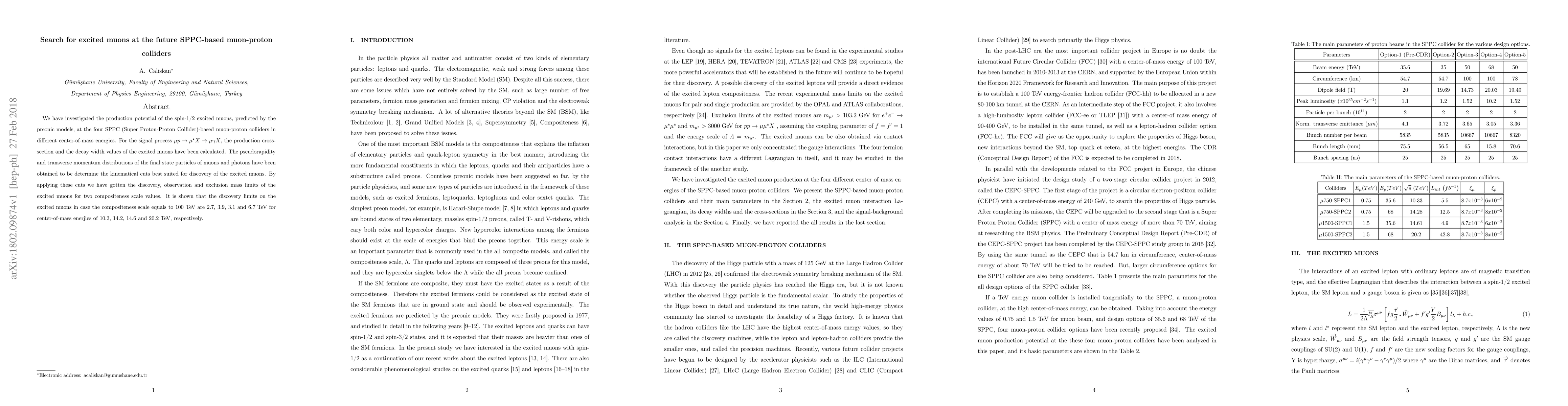 We have investigated the production potential of the spin-1/2 excited muons, predicted by the preonic models, at the four SPPC (Super Proton-Proton Collider)-based muon-proton colliders in different center-of-mass energies. For the signal process \mu p\rightarrow\mu^{\star}X\rightarrow\mu\gamma X, the production cross-section and the decay width values of the excited muons have been calculated. The pseudorapidity and transverse momentum distributions of the final state particles of muons and photons have been obtained to be determine the kinematical cuts best suited for discovery of the excited muons. By applying these cuts we have gotten the discovery, observation and exclusion mass limits of the excited muons for two compositeness scale values. It is shown that the discovery limits on the excited muons in case the compositeness scale equals to 100 TeV are 2.7, 3.9, 3.1 and 6.7 TeV for center-of-mass energies of 10.3, 14.2, 14.6 and 20.2 TeV, respectively.