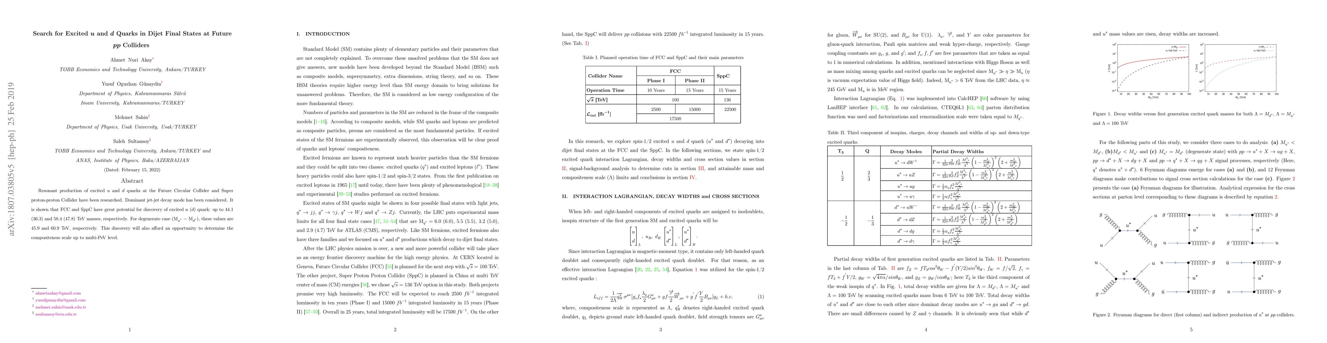 Resonant production of excited $u$ and $d$ quarks at the Future Circular Collider and Super proton-proton Collider have been researched. Dominant jet-jet decay mode has been considered. It is shown that FCC and SppC have great potential for discovery of excited $u$ ($d$) quark: up to 44.1 (36.3) and 58.4 (47.8) TeV masses, respectively. For degenerate case (M$_{u^{\star}}$ = M$_{d^{\star}}$), these values are 45.9 and 60.9 TeV, respectively. This discovery will also afford an opportunity to determine the compositeness scale up to multi-PeV level.