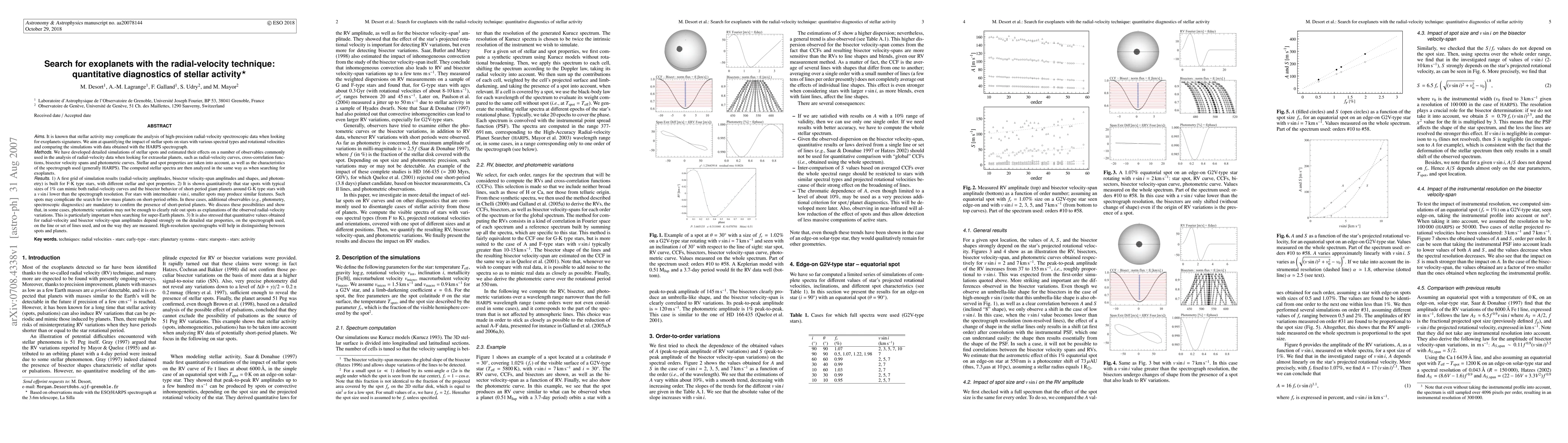 This paper investigates the impact of stellar activity, particularly spots, on the detection of exoplanets using radial-velocity techniques. It develops simulations to quantify how stellar spots can mimic exoplanet signals, emphasizing the need for additional observations to confirm planet detections, especially for super-Earths.