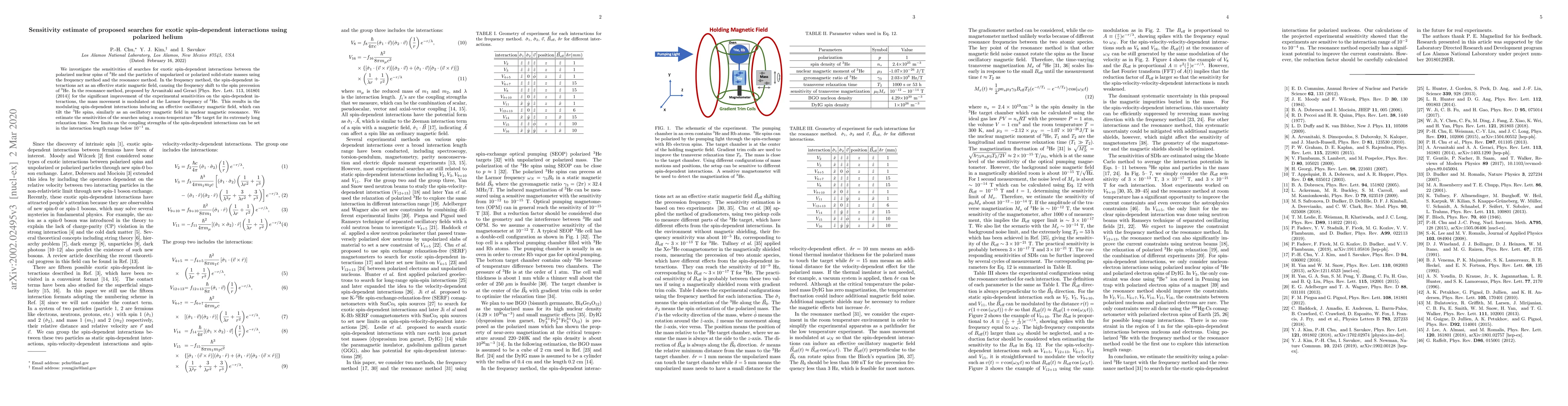 Researchers investigate sensitivity to exotic spin-dependent interactions using polarized helium, setting new limits on coupling strengths below 10^-1 m in interaction length.