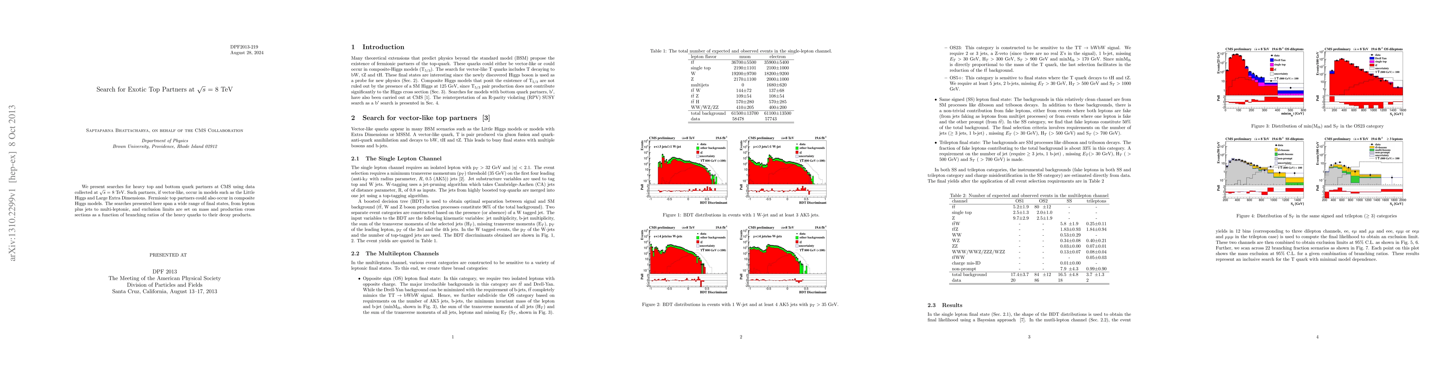This paper reports searches for heavy top and bottom quark partners at CMS using 8 TeV data, focusing on vector-like quarks in models like Little Higgs and Large Extra Dimensions. Exclusion limits on mass and production cross sections are established based on various decay final states.