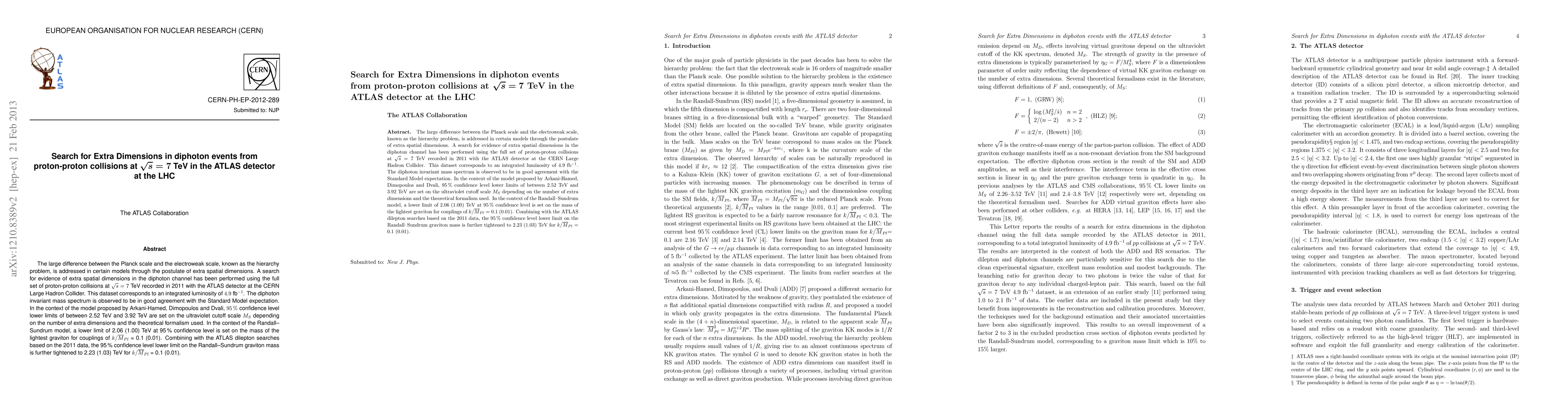 This paper investigates the possibility of extra spatial dimensions through the analysis of diphoton events from proton-proton collisions at 7 TeV with the ATLAS detector. The results show no deviations from Standard Model predictions, setting lower limits on the ultraviolet cutoff scale and the mass of the lightest graviton in various theoretical models.