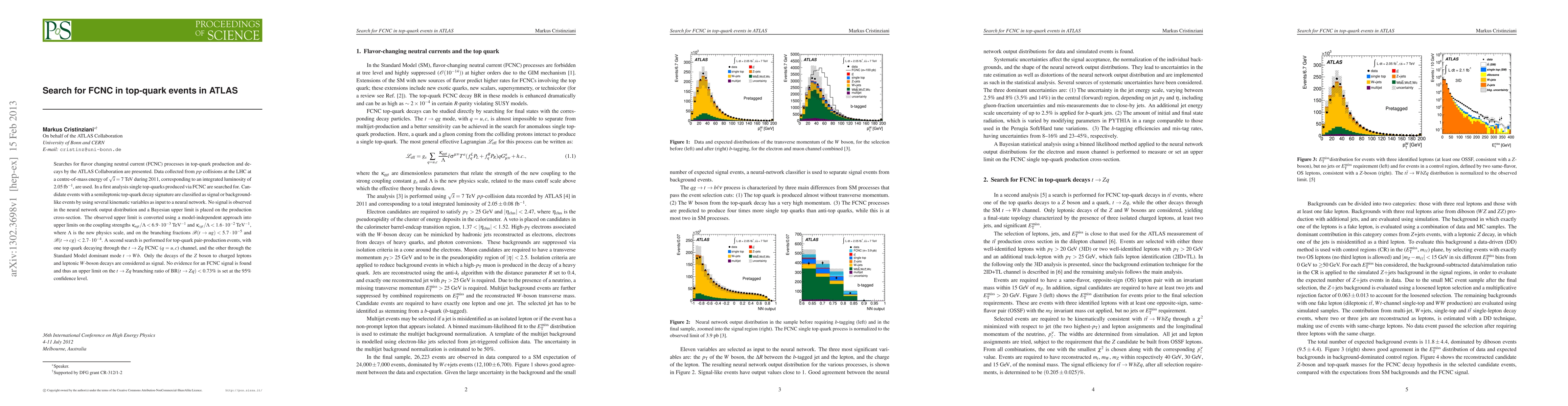 The ATLAS Collaboration reports searches for flavor-changing neutral current (FCNC) processes in top-quark events, using data from 2011 LHC collisions at 7 TeV. No FCNC signals are observed, resulting in upper limits on coupling strengths and branching fractions, ruling out certain FCNC interactions.