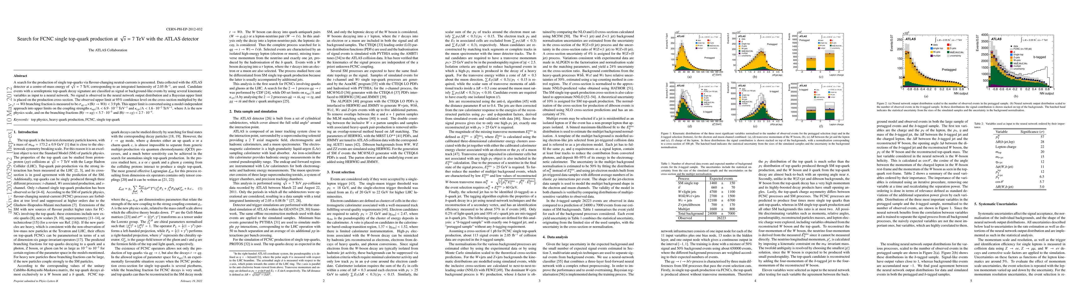 The ATLAS detector searched for single top-quark production with a unique decay signature and set an upper limit on the cross-section, finding no evidence for flavor-changing neutral current processes, which could imply new physics beyond the Standard Model.