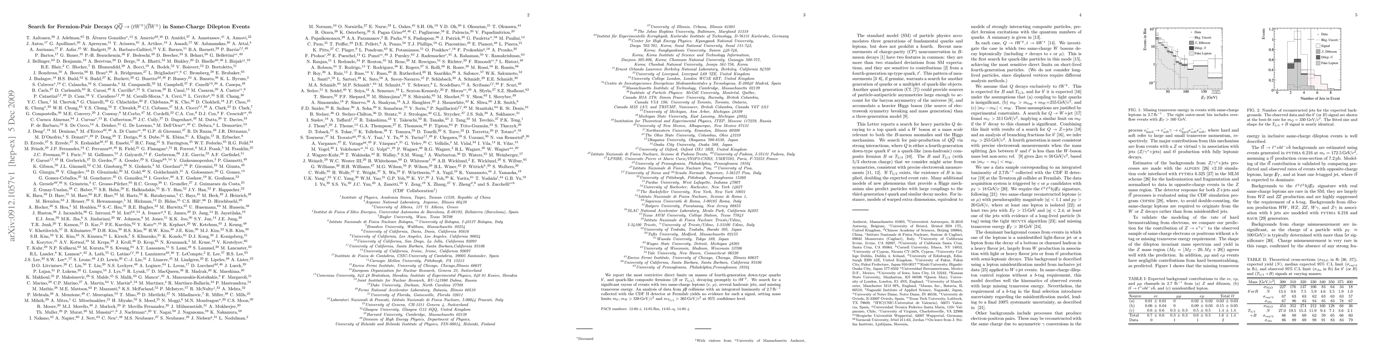 We report the most restrictive direct limits on masses of fourth-generation down-type quarks $b^{\prime}$, and quark-like composite fermions ($B$ or $T_{5/3}$), decaying promptly to $t W^{\mp}$. We search for a significant excess of events with two same-charge leptons ($e$, $\mu$), several hadronic jets, and missing transverse energy. An analysis of data from $p\overline{p}$ collisions with an integrated luminosity of 2.7 fb$^{-1}$ collected with the CDF II detector at Fermilab yields no evidence for such a signal, setting mass limits $m_{b^{\prime}}, m_{B} >$ 338 $\mathrm{GeV}/c^2$ and $m_{T_{5/3}} >$ 365 $\mathrm{GeV}/c^2$ at 95% confidence level.
