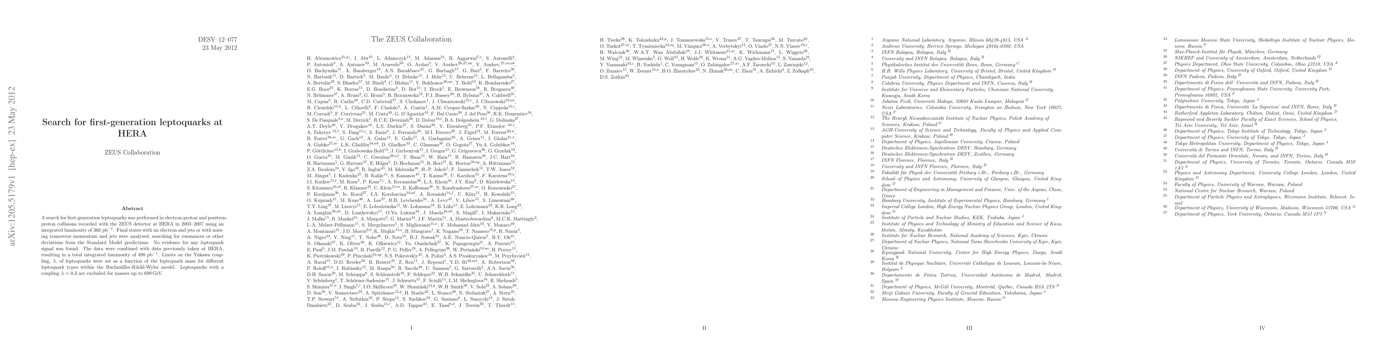 A search for first-generation leptoquarks was performed in electron-proton and positron-proton collisions recorded with the ZEUS detector at HERA in 2003-2007 using an integrated luminosity of 366 pb^-1. Final states with an electron and jets or with missing transverse momentum and jets were analysed, searching for resonances or other deviations from the Standard Model predictions. No evidence for any leptoquark signal was found. The data were combined with data previously taken at HERA, resulting in a total integrated luminosity of 498 pb^-1. Limits on the Yukawa coupling, lambda, of leptoquarks were set as a function of the leptoquark mass for different leptoquark types within the Buchmueller-Rueckl-Wyler model. Leptoquarks with a coupling lambda=0.3 are excluded for masses up to 699 GeV.