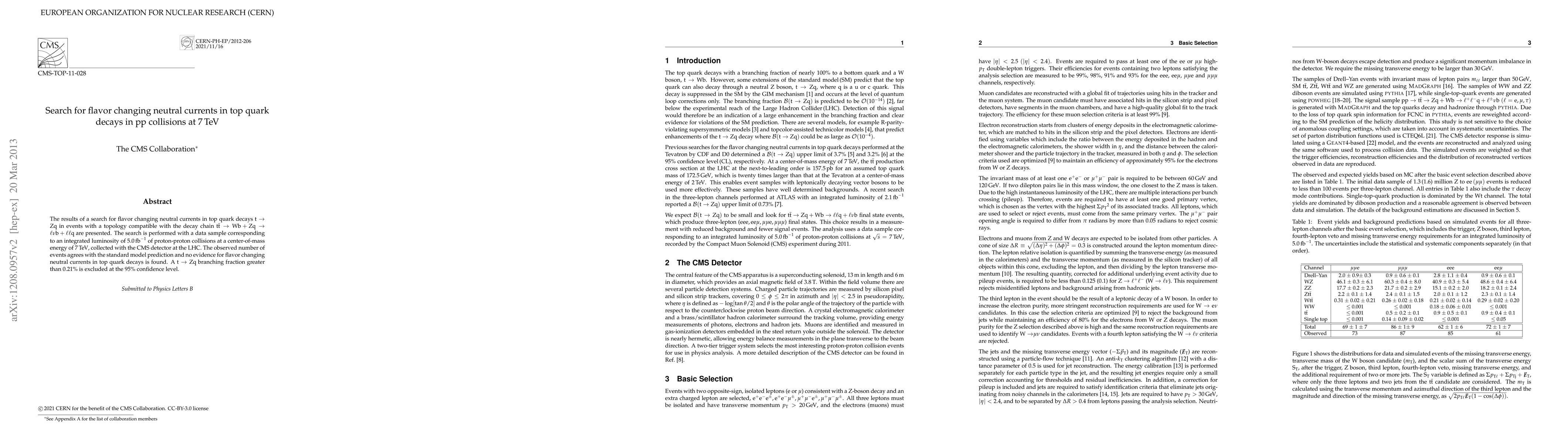 This paper reports a search for flavor changing neutral currents in top quark decays using proton-proton collision data at 7 TeV from the CMS detector at the LHC. No evidence for such decays was found, and a branching fraction greater than 0.21% for t to Zq is excluded at 95% confidence level.