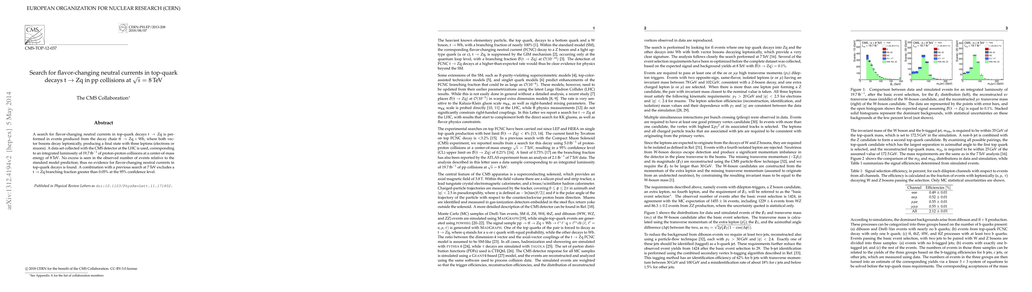 This study investigates potential flavor-changing neutral currents in top-quark decays to Zq using CMS detector data from LHC proton-proton collisions at 8 TeV. No evidence for such decays was found, leading to a 95% confidence level exclusion of a branching fraction greater than 0.05%.