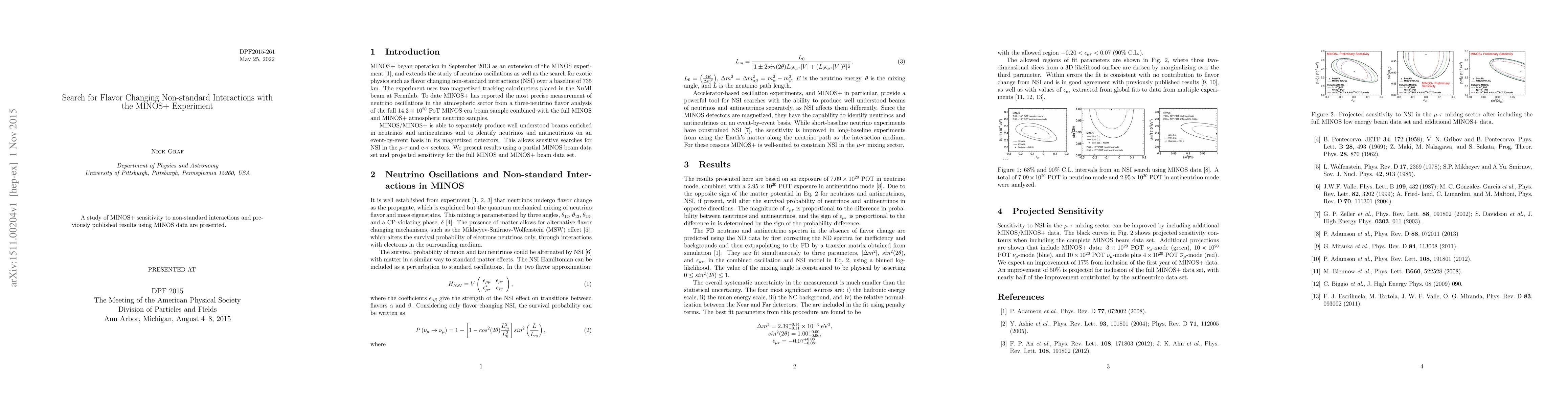 Summary: This paper investigates MINOS+'s capability to detect non-standard flavor-changing interactions, presenting both new sensitivity analyses and a comparison with previous MINOS results. The findings aim to enhance the understanding of potential new physics beyond the Standard Model.