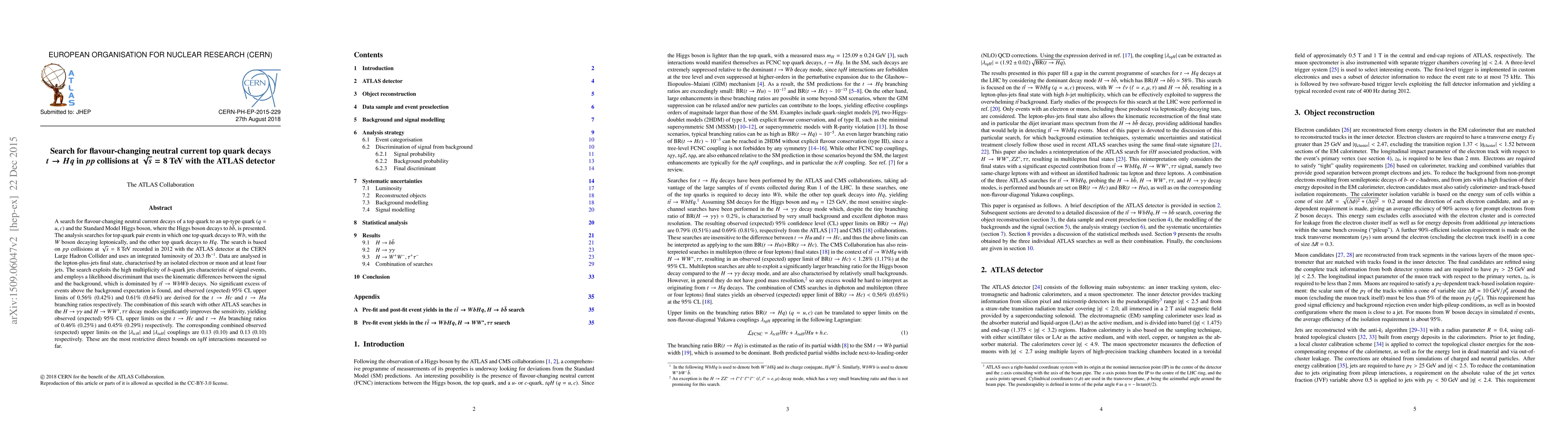 This paper reports a search for flavour-changing neutral current top quark decays $t\to Hq$ using the ATLAS detector at the LHC, finding no significant excess above background. The study sets the most restrictive direct limits on $tqH$ interactions, with observed 95% CL upper limits of 0.46% and 0.45% for the $t\to Hc$ and $t\to Hu$ branching ratios respectively.