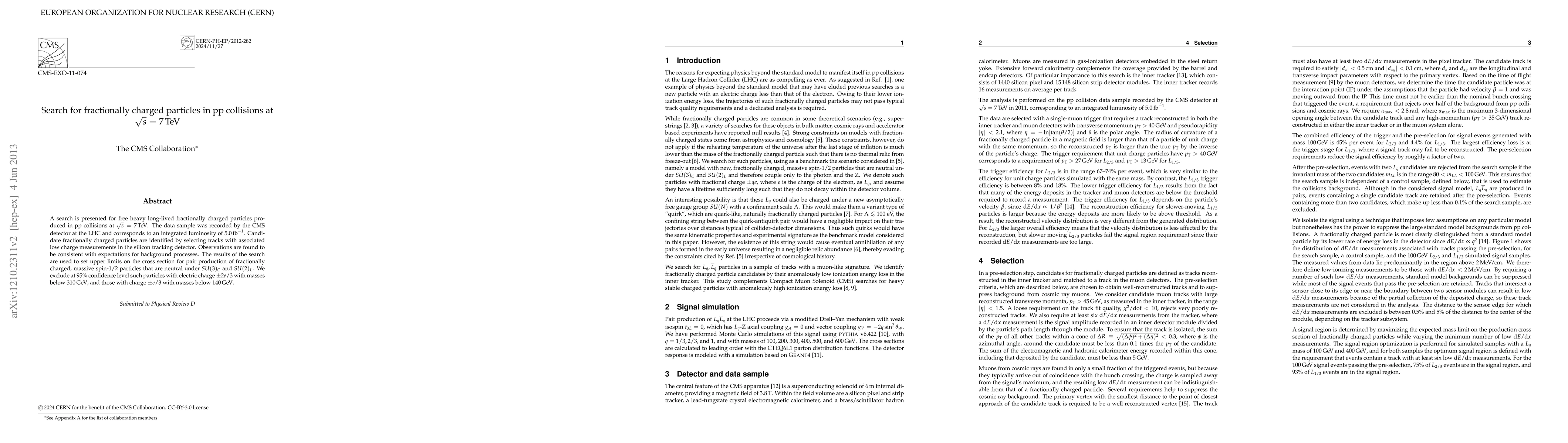 This paper reports a search for free heavy long-lived fractionally charged particles in proton-proton collisions at 7 TeV using the CMS detector at the LHC, finding no evidence for such particles. The study sets upper limits on the cross section for these particles, excluding those with charges +/-2e/3 below 310 GeV and +/-e/3 below 140 GeV at 95% confidence level.