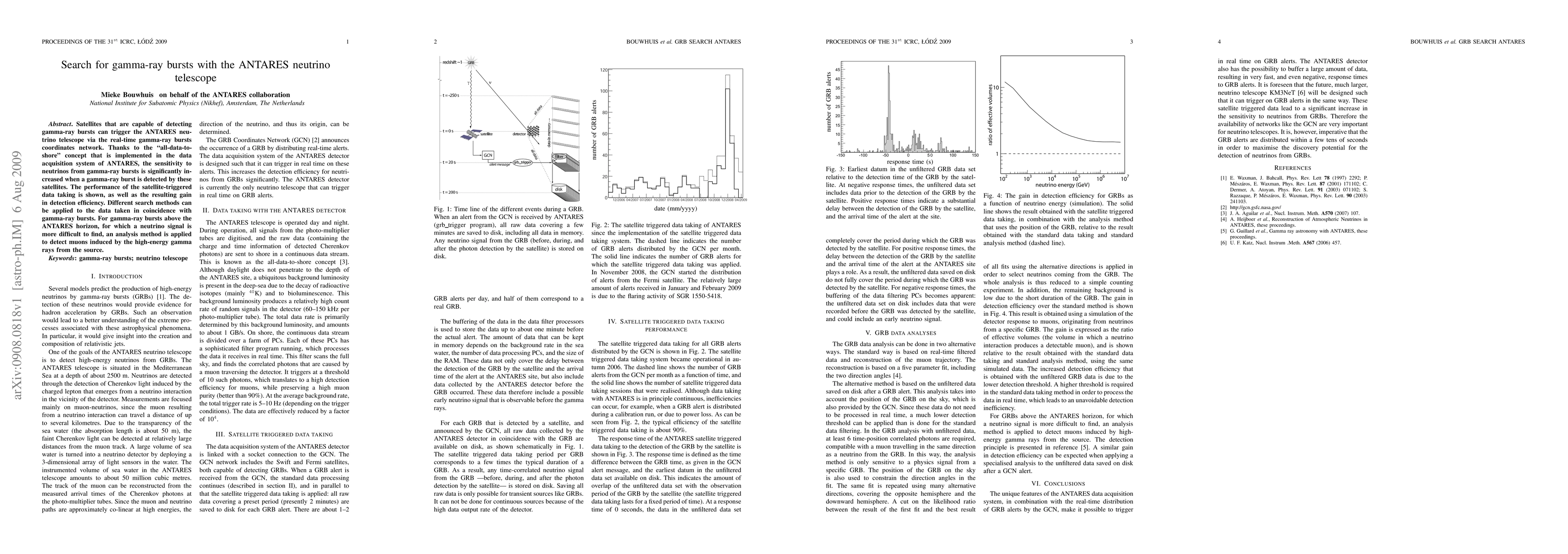 This paper investigates the use of the Antares neutrino telescope to detect neutrinos from gamma-ray bursts, leveraging satellite detections to trigger data acquisition. The study demonstrates increased sensitivity and efficiency in neutrino detection when gamma-ray bursts are detected by satellites, employing various search methods to identify potential neutrino signals.