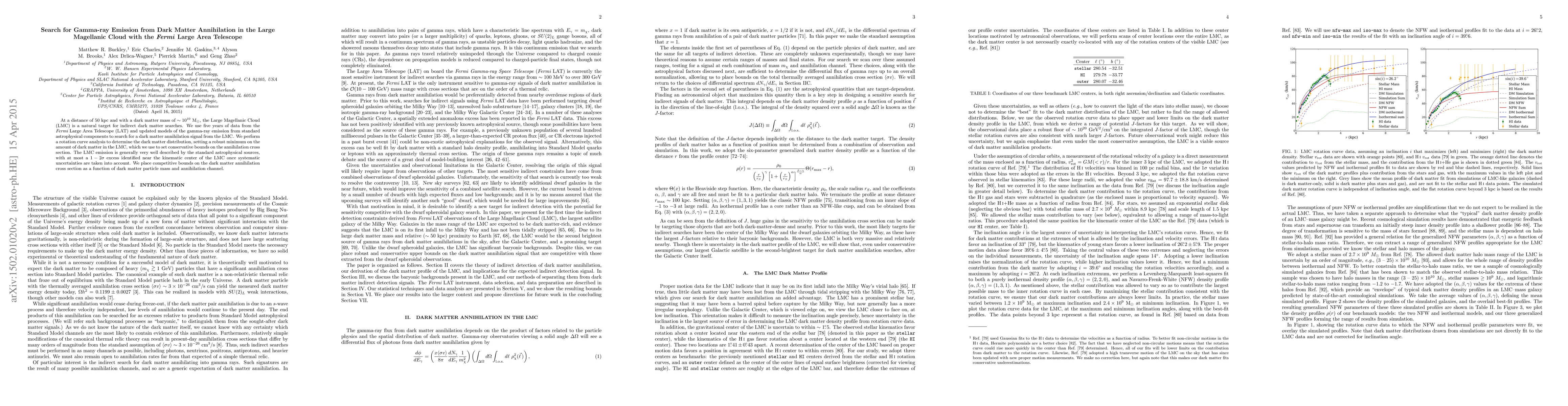 This paper uses five years of Fermi Large Area Telescope data to search for gamma-ray emission from dark matter annihilation in the Large Magellanic Cloud (LMC). The study finds no significant excess over standard astrophysical sources, setting competitive limits on the dark matter annihilation cross section.
