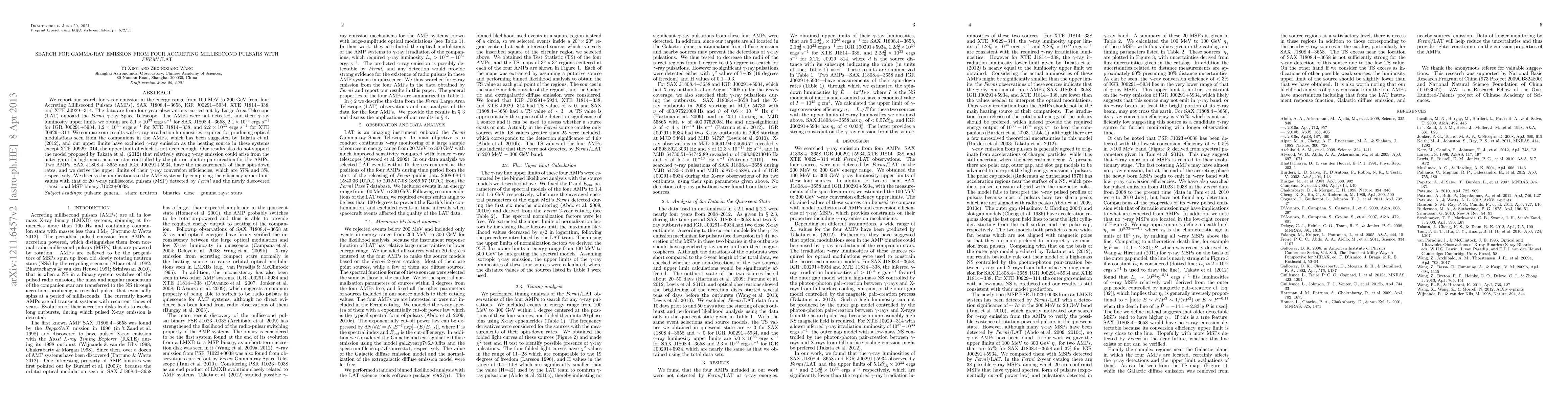 Researchers searched for gamma-ray emission from four accreting millisecond pulsars using Fermi/LAT data and found upper limits on their gamma-ray luminosity, ruling out gamma-ray irradiation as the heating source in most systems, except XTE J0929-314.