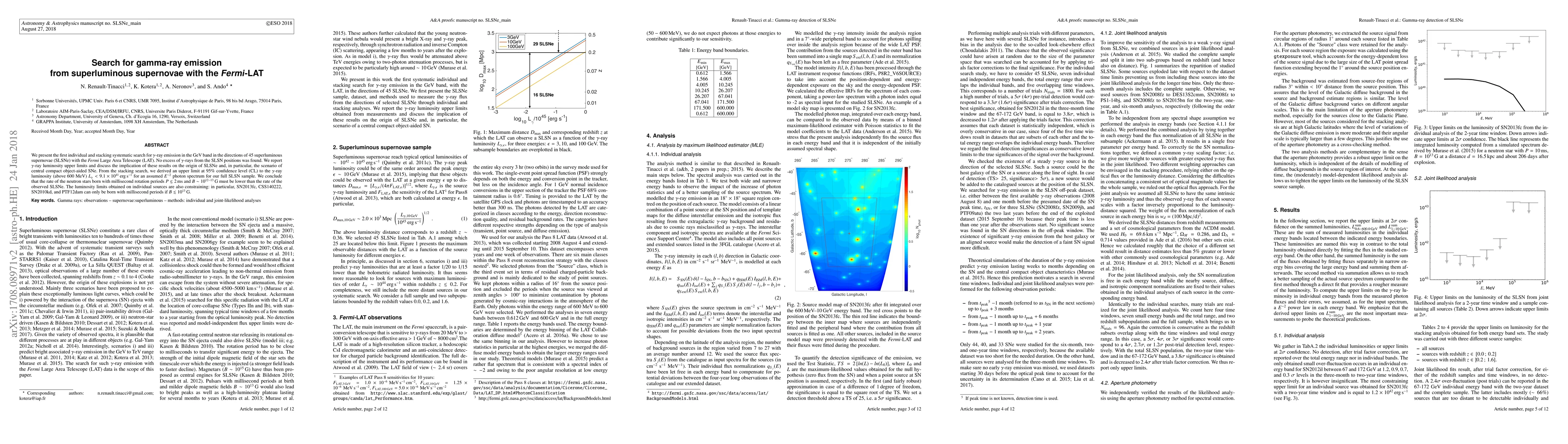 The Fermi-LAT searched for gamma-ray emission from 45 super-luminous supernovae with no excess detected, setting upper limits on their gamma-ray luminosity.