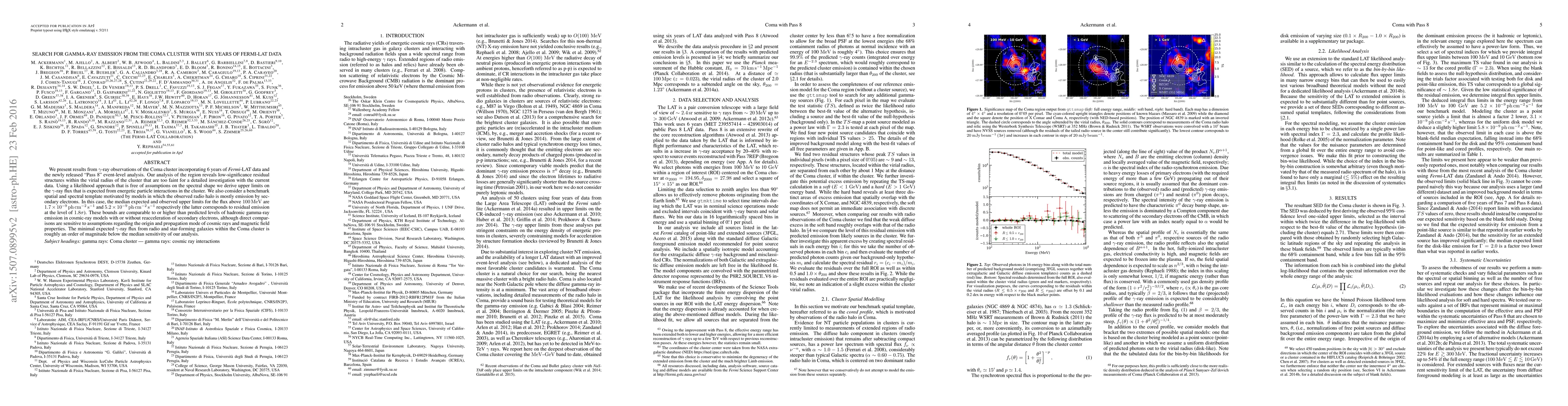 This study uses six years of Fermi-LAT data to search for gamma-ray emission from the Coma Cluster, finding low-significance residual structures but no conclusive evidence. The derived upper limits on gamma-ray flux are comparable to or exceed predictions from cosmic-ray models, indicating the data is insufficient to confirm or refute specific emission mechanisms.