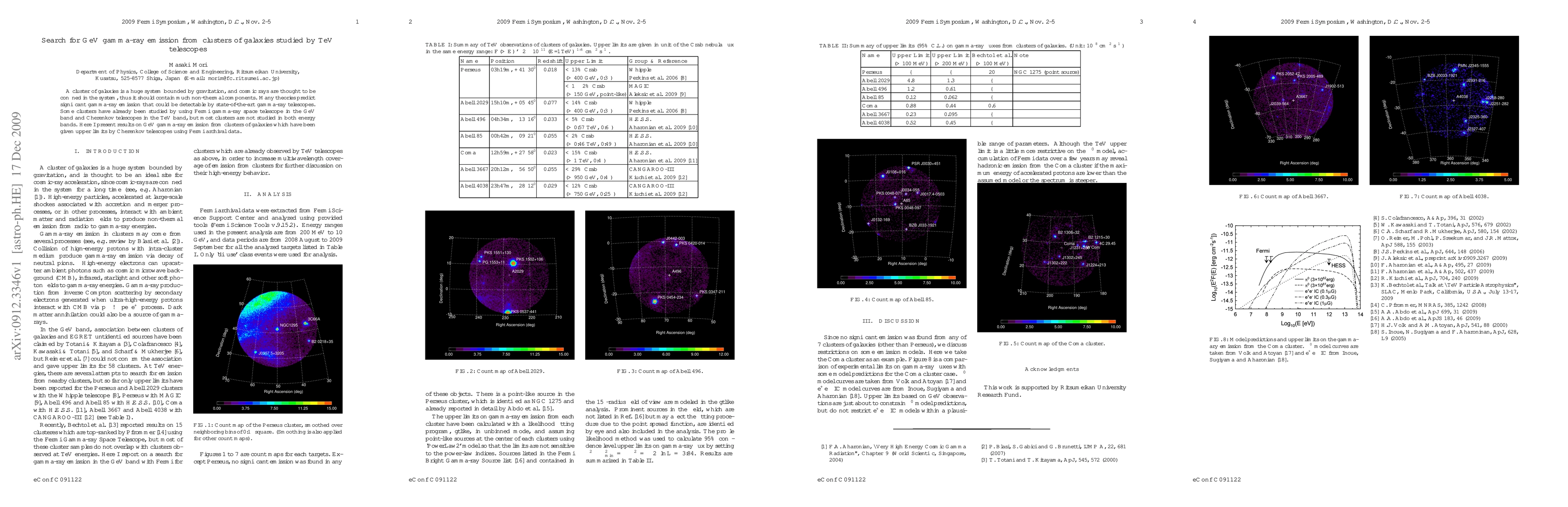 This study searches for gamma-ray emission from galaxy clusters using TeV telescopes, focusing on energy bands not previously explored, providing new insights into the physics of these massive systems.