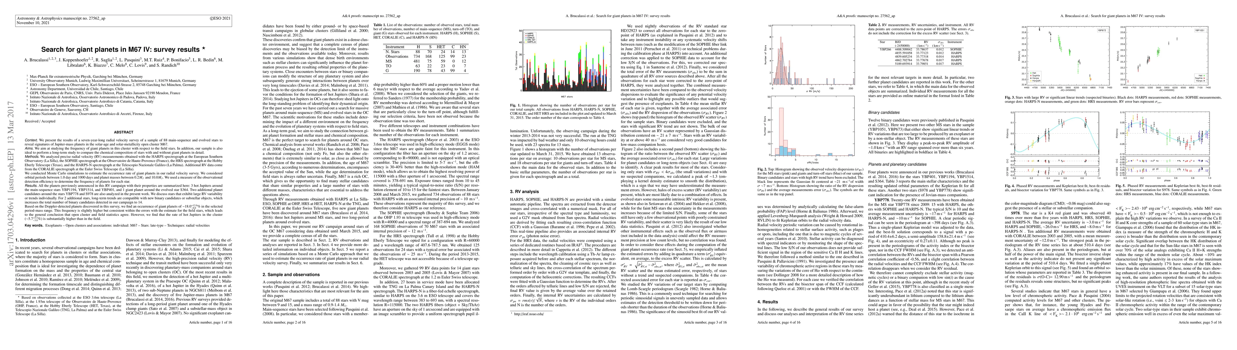 This seven-year radial velocity survey of M67 stars found an occurrence rate of giant planets of ~18%, slightly higher but consistent with field stars. Notably, the rate of hot Jupiters in M67 is significantly higher than in the field, suggesting different planet formation or migration processes in clusters.