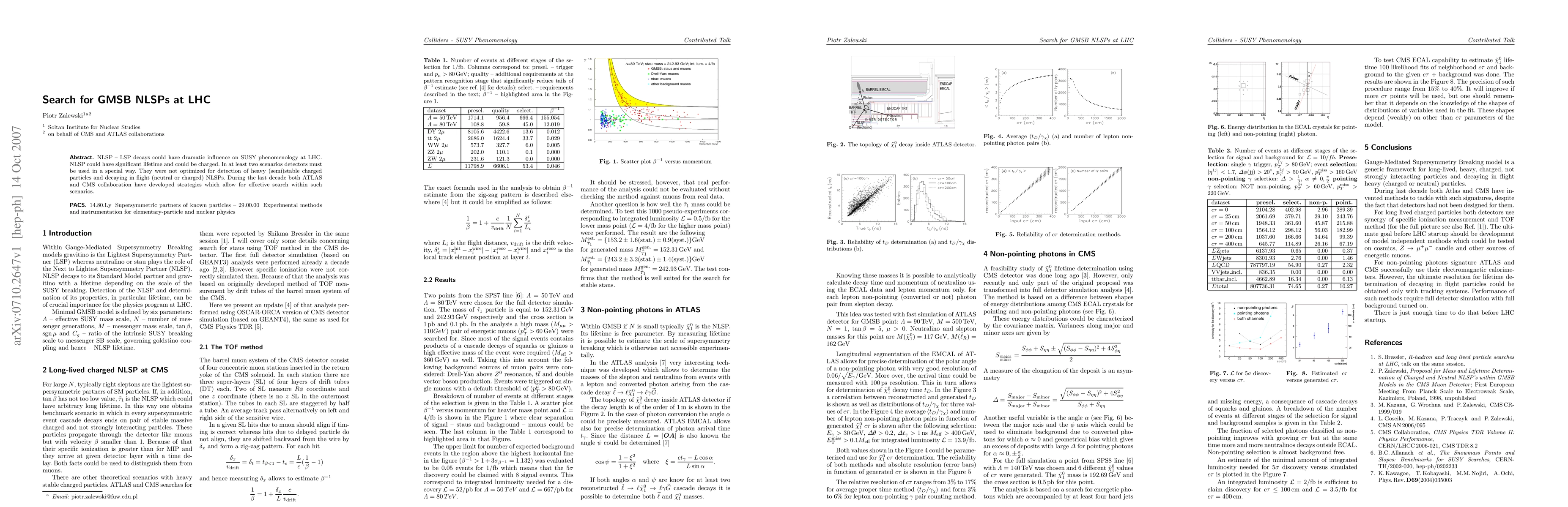 This paper explores the search for Next-to-Lightest Supersymmetric Particles (NLSPs) as potential candidates for the Lightest Supersymmetric Particle (LSP) at the LHC, emphasizing their potential dramatic impact on SUSY phenomenology due to their significant lifetime and charge. Both ATLAS and CMS collaborations have developed specialized detection strategies to effectively search for these heavy, semi-stable charged particles and their in-flight decays.