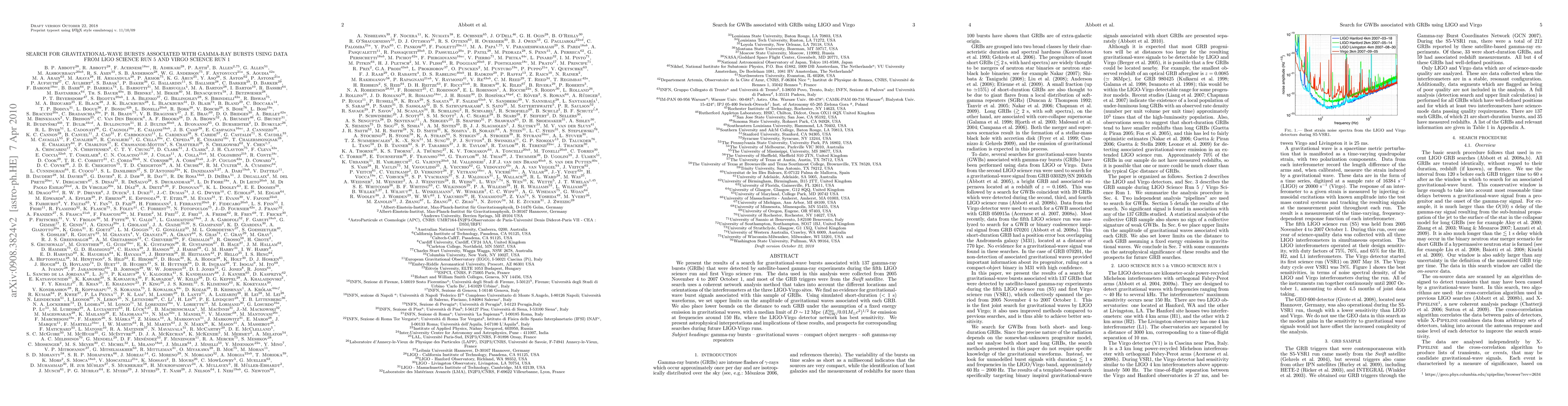 This study investigates gravitational-wave bursts linked to 137 gamma-ray bursts detected during LIGO and Virgo's fifth and first science runs, respectively. No gravitational-wave signals were found, leading to upper limits on their amplitudes and lower bounds on GRB distances.