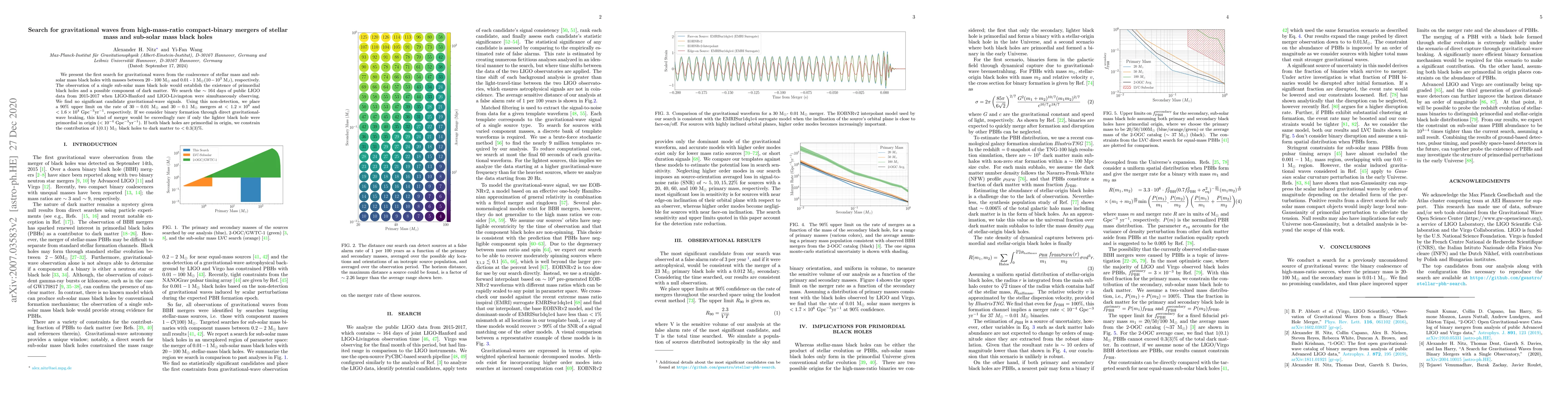 This paper reports the first search for gravitational waves from mergers of stellar mass and sub-solar mass black holes, finding no significant signals. It sets upper limits on the merger rates and constrains the contribution of primordial black holes to dark matter.