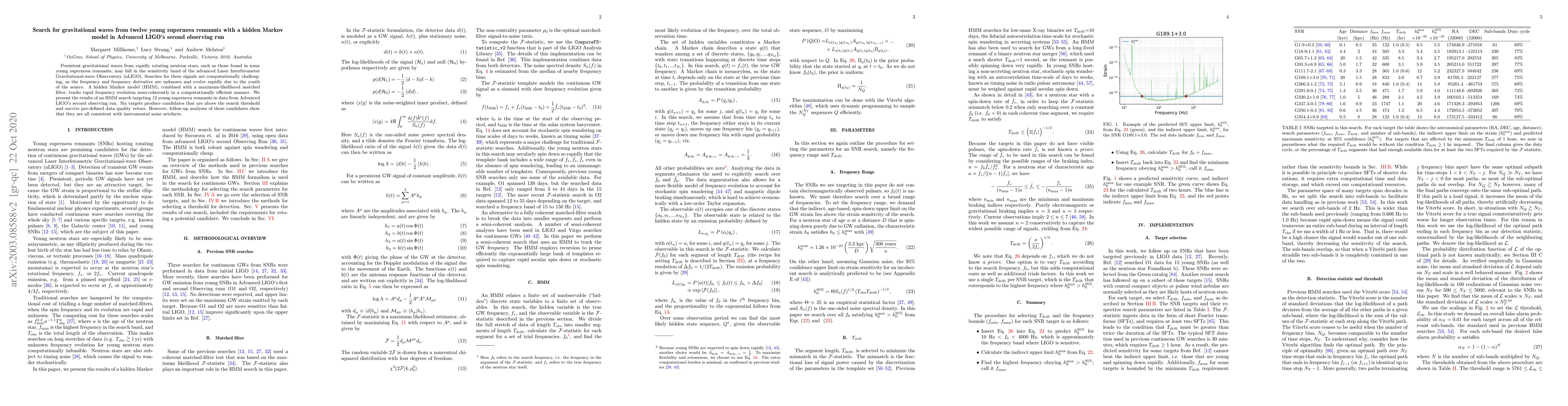 This study uses a hidden Markov model to search for gravitational waves from 12 young supernova remnants in Advanced LIGO's second observing run. Although six candidates were found above the search threshold, follow-up analysis revealed they were likely due to instrumental noise rather than astrophysical signals.