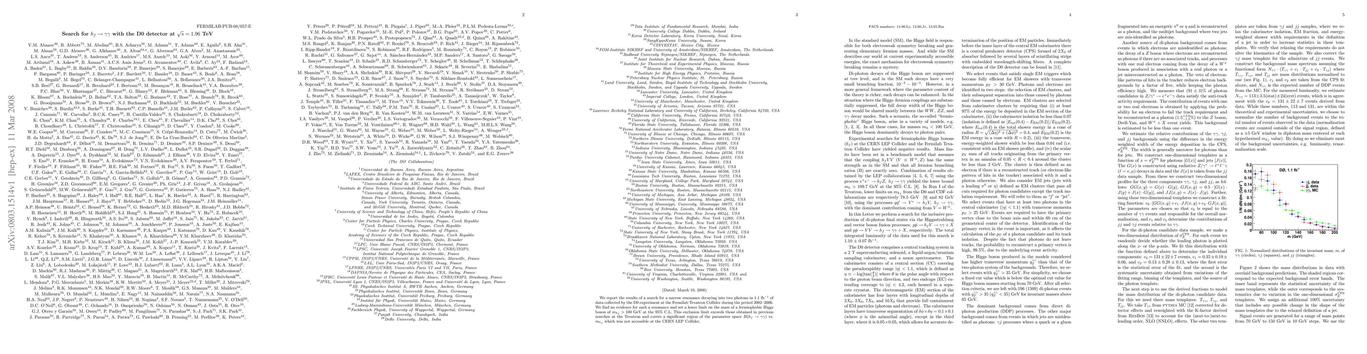 The D0 experiment at Fermilab's Tevatron Collider analyzed 1.1 fb^-1 of data from 2002-2006, searching for a narrow resonance decaying into two photons. No evidence was found, leading to a lower limit of m_hf > 100 GeV at 95% C.L. for a fermiophobic Higgs boson, surpassing prior Tevatron limits and expanding unexplored parameter space compared to LEP.