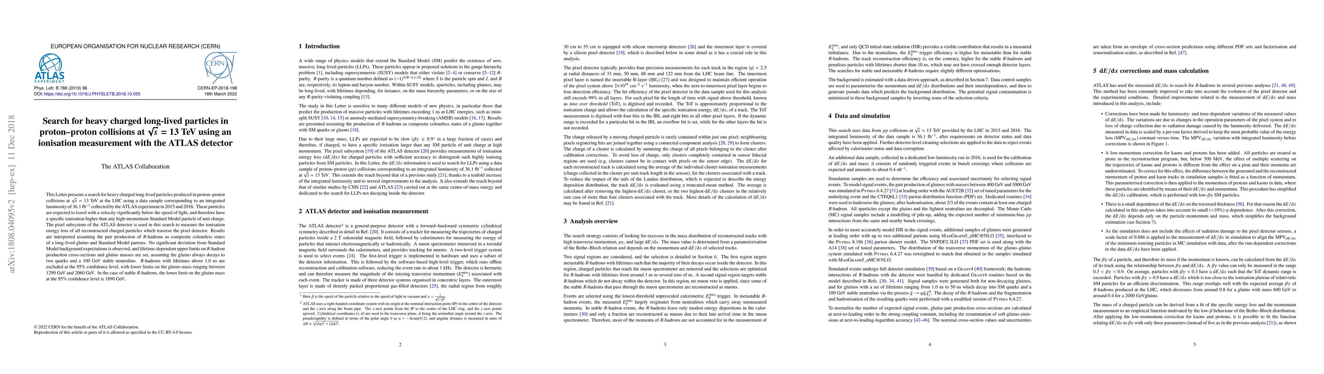 This paper reports a search for heavy charged long-lived particles in proton-proton collisions at 13 TeV using the ATLAS detector, focusing on ionisation measurements. No evidence of such particles was found, leading to new upper limits on gluino masses and lifetimes.