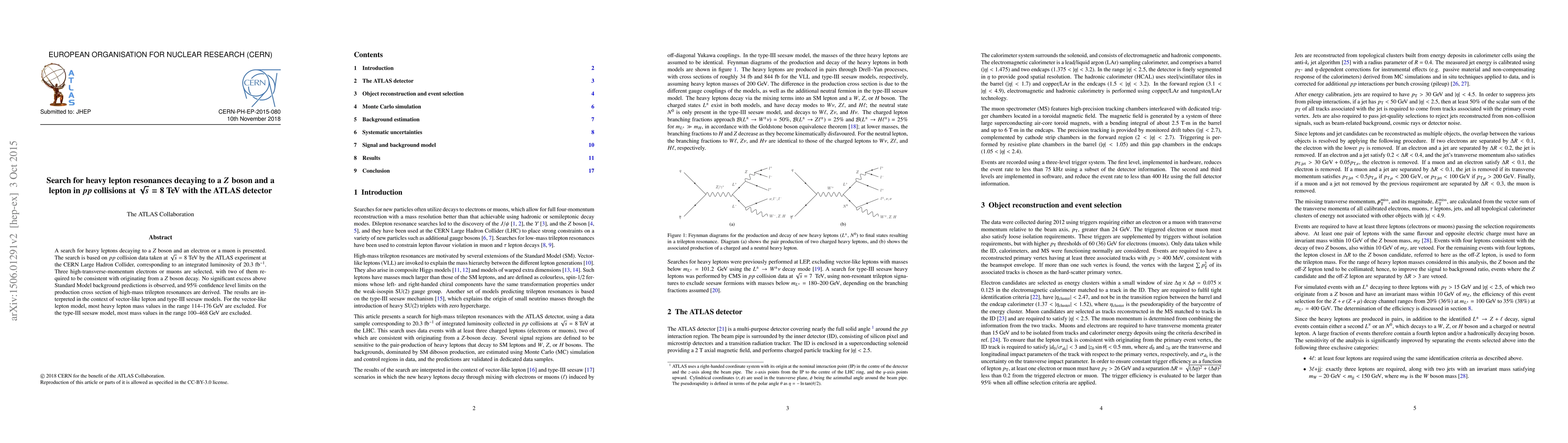 The ATLAS experiment searched for heavy leptons decaying to a Z boson in proton-proton collisions at 8 TeV, setting 95% CL limits on high-mass trilepton resonances.