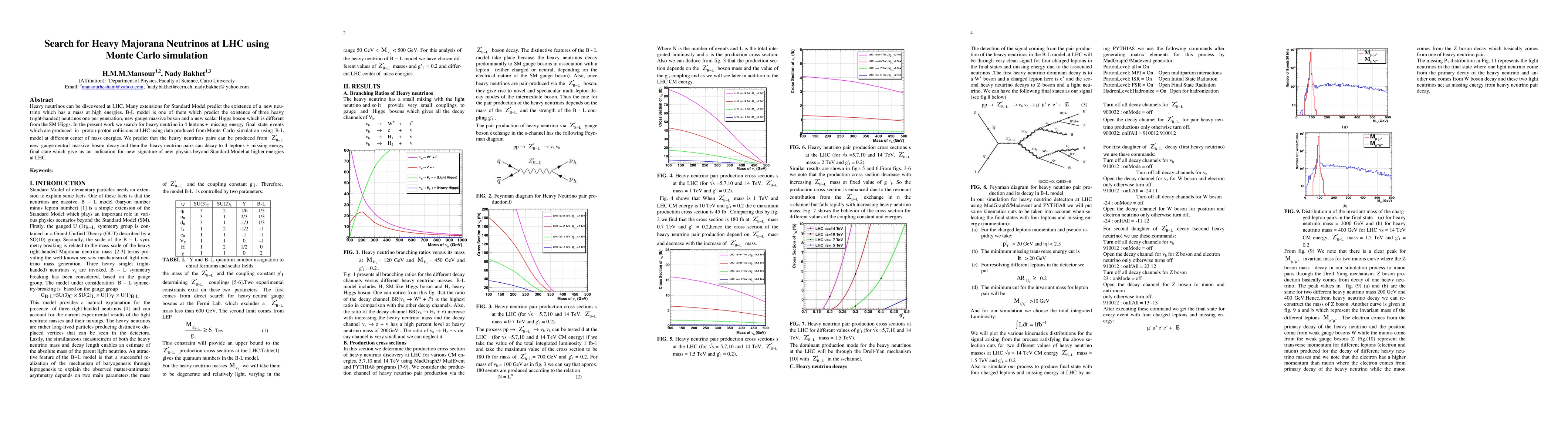 This paper investigates the potential discovery of heavy Majorana neutrinos at the LHC using Monte Carlo simulations for the B-L model, which predicts three heavy right-handed neutrinos. The study focuses on 4 leptons + missing energy final states from proton-proton collisions, suggesting new physics signatures beyond the Standard Model.