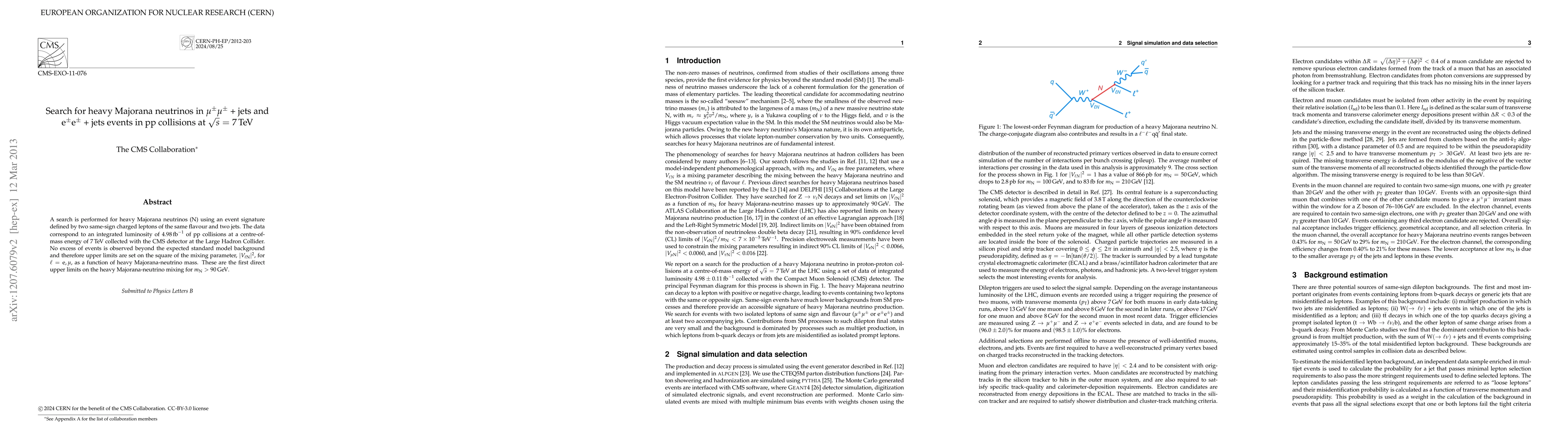This paper reports a search for heavy Majorana neutrinos using the CMS detector at the LHC, observing no excess events beyond standard model predictions. It sets new upper limits on the mixing parameter for Majorana neutrinos with masses above 90 GeV.