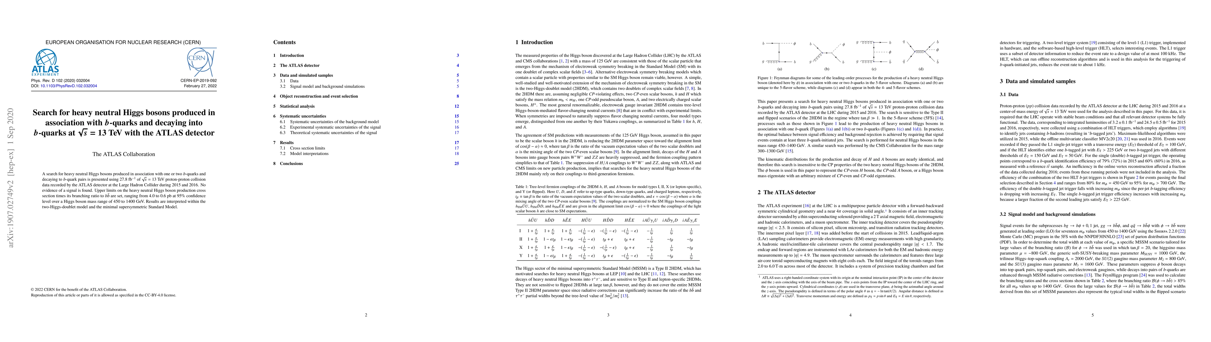 This paper reports a search for heavy neutral Higgs bosons produced with $b$-quarks and decaying into $b$-quark pairs using ATLAS data at 13 TeV. No signal is found, and upper limits on production cross-section are set, with implications for the two-Higgs-doublet model and the minimal supersymmetric Standard Model.
